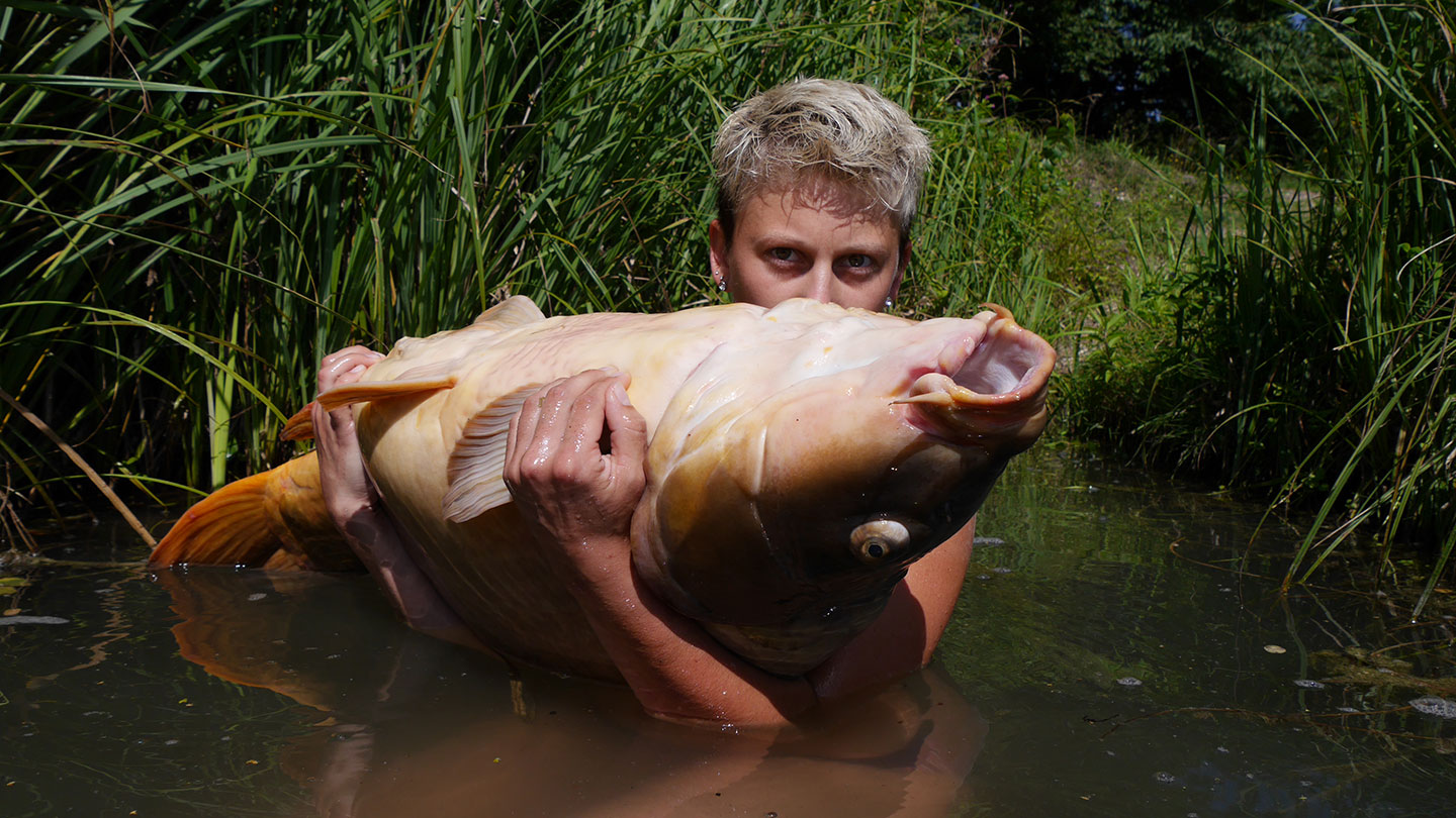 «Bei der letzten Herbstsession mit meinem Freund Philip gelangen uns einige tolle Fänge. Am letzten Tag konnte ich meinen «Personal Best» noch einmal erheblich steigern und fing einen ganz besonderen Fisch, der an diesem stark befischten Gewässer nur selten seine Flanke zeigt. Die 52-pfündige Fressmaschine biss auf einen einzelnen 16-mm JENZI Strawberry-Boilie. Ich benutzte ein Stiff-Rig, gebunden an einem 4er D-Rig Hook. Als Vorfach diente mir ein Amnesia. Ich war überwältigt, als sich die 2,5 LBS C1 Stalker-Rute bis ins Handteil bog und die Bremse meiner Systeme MX 7000-Rolle zu singen begann. That’s the reason why we go Fishing.»