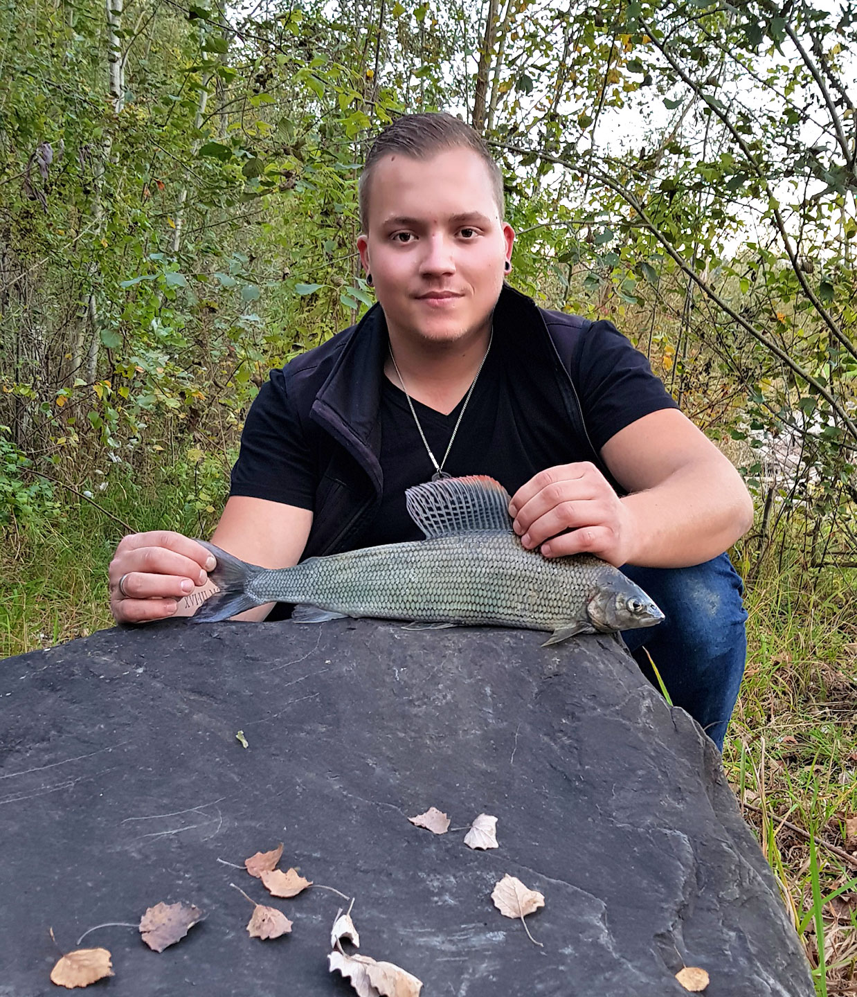 Diese wunderschöne Äsche fing Marc Nicolet aus Belp am 13. Oktober bei klarem Himmel und Sonnenschein an der Aare in Bern. Sie biss gegen 16 Uhr auf das Tiroler-System. Verwendetes Gerät: Shimano Vengeance AX Slim TE-Rute 3,6 m, Daiwa Revros E 1500 A-Rolle, 0,12er Berkley Nanofil Geflochtene, 0,20er-Stroft GTM Monofil Vorfach, Goldkopfnymphe gelb/braun mit Haken Nr. 12.