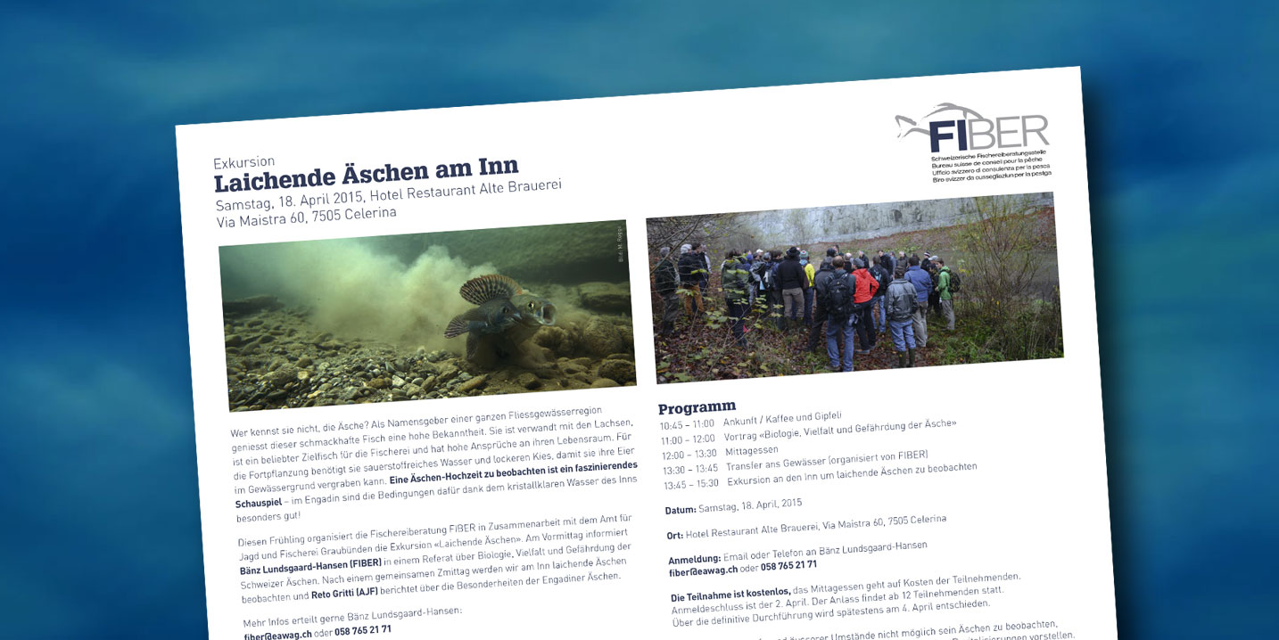 Diesen Frühling organisiert die Fischereiberatung FIBER in Zusammenarbeit mit dem Amt für Jagd und Fischerei des Kantons Graubünden die Exkursion «Laichende Äschen». Der Anlass findet am Samstag 18. April in Celerina im Engadin statt.