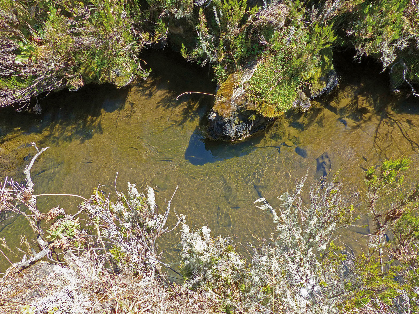 Am dritten Tag überquerten die Abenteurer einen Pass und begaben sich auf den Abstieg zum Lake Michaelson auf 3800 Meter über Meer. Auch dort konnten wieder viele Forellen bis ein Kilogramm Gewicht gefangen werden. Anderntags befischte Hansheiri schliesslich einen ungefähr 500 Meter tiefergelegenen Bergbach. Die Anzahl der Bachforellen, die in diesem Gewässer schwammen, war beeindruckend – deren Grösse eher weniger. Offensichtlich verbutten die Forellenbestände in den