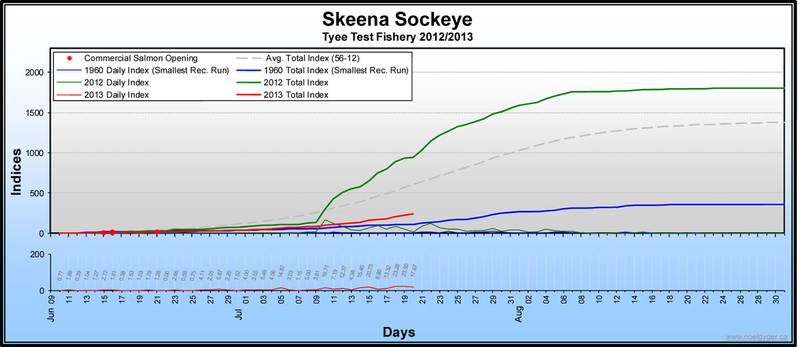 Die Fischereibehörde in Britisch Kolumbien stützt sich beim Erlass eines Fangverbots auf die Anzahl der zurückkehrenden Lachse. Im Skeena liegt die zur Arterhaltung nötige Zahl bei 800 000 Rotlachsen. Da diese Zahl in diesem Jahr bei weitem nicht erreicht werden dürfte, wurde konsequenterweise ein totales Fangverbot erlassen.