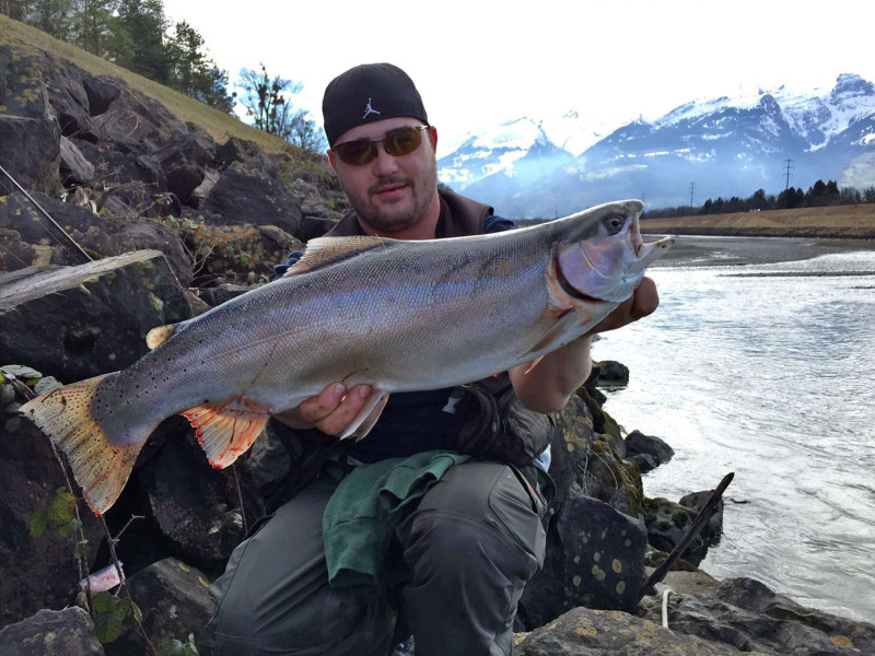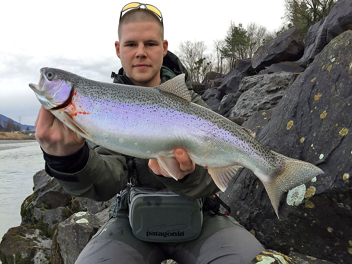 Wieder mal was fürs Auge: Zwei prächtige Regenbogenforellen aus dem Alpenrhein (58er sowie 64er), beide bissen auf den künstlichem Tauwurm. Gerät: Laufrolle und 22er Monofil. Die Glücklichen: Fabian Niedermann und Lukas Hilti. Euch beiden herzliche Gratulation zu diesen prächtigen Fischen!
