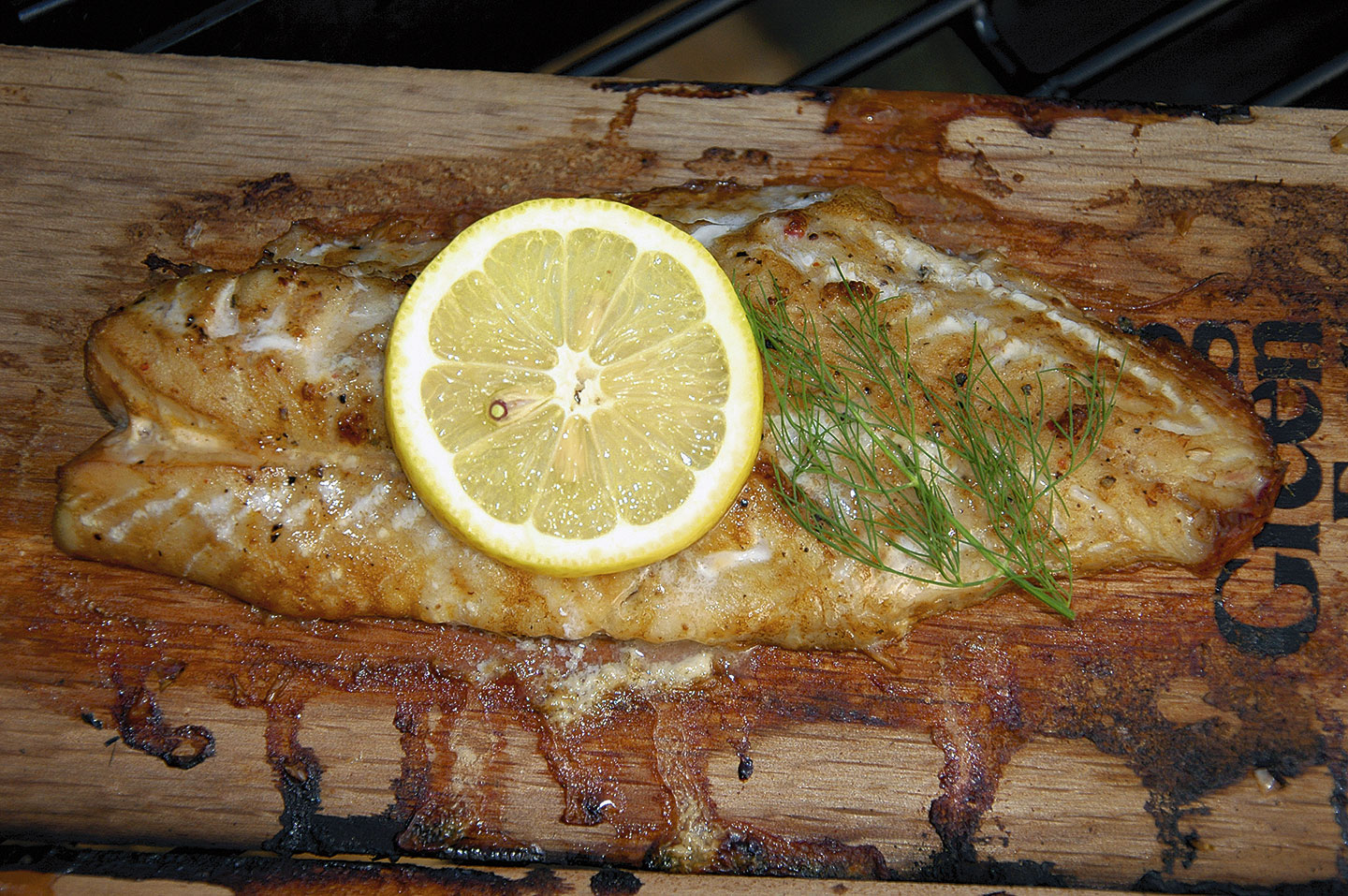 Auf Holz gegrillter Fisch