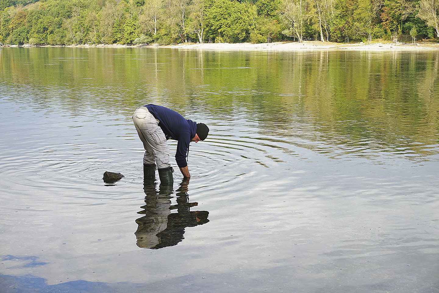 Wir treffen bei unserem Augenschein an diesem Dienstagvormittag Mitte Oktober etliche Jahreskärtler an, die fast alle die eine oder andere Äsche überlisten konnten. Kaum eine erreichte jedoch das Schonmass von 30 cm und wenn, nur ganz knapp. Das war schon letztes Jahr so, im Dezember und Januar konnte man dann öfters mit drei Mässigen rechnen. Also freute man sich dieses Jahr auf den starken Jahrgang, der nun 35 bis 38 cm erreicht haben müsste. Aber in den ersten beiden Wochen der Saison fingen weder Ufer- noch Bootsfischer eine grössere Anzahl dieser Fische. Immerhin konnten die Bootsfischer einige Exemplare über der 40er-Grenze behändigen.