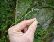 Das Fischen mit den Haselruten gestaltet sich nicht ganz so einfach. Eine Rute mit Rolle gewohnt, fällt uns das Auswerfen mit den Stecken schwer, wenn denn überhaupt von «Werfen» die Rede sein kann. Vielmehr sind wir froh, den Wurm einigermassen zielgerichtet unter der Spitze unserer Stecken im Wasser platzieren zu können. Wir machen dabei nicht die eleganteste Figur und müssen uns stark exponieren, um interessante Stellen überhaupt erreichen zu können. Unauffällig geht anders, da richtet auch Rubens hübscher Grashalm als Bissanzeiger nicht viel aus. Ganz zu schweigen von der limitierten Reichweite. Kaum ist der Wurm im Wasser, hat ihn die Strömung auch schon wieder vorbeigetrieben. Wir strecken und recken uns für jeden Zentimeter in der fängigen Zone. So langsam dämmert uns, weshalb die Entwicklung der Fischereiutensilien nicht bei den Stecken stehen geblieben ist …