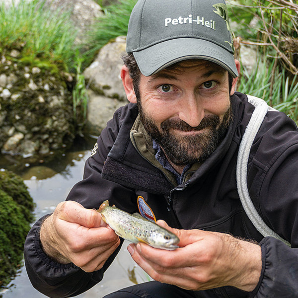 Ruben befischt derweil einen Abschnitt mit vielen grossen Steinen und lässt seinen Wurm jeweils direkt unter der Spitze in den Strömungsschatten der Hindernisse sinken. Schliesslich steigt endlich eine kleine Fario ein und Ruben freut sich, dass sich trotz der einfachen Mittel eine der scheuen Forellen verführen lässt. Leider ist die Zeit fortgeschritten, doch Ruben kann sich kaum losreissen und ist überzeugt, dass sich mit dieser minimalistischen Ausrüstung auch ein richtig guter Fisch fangen lässt. Wenn nicht heute, dann bestimmt ein anderes Mal. Dieses Fischen macht mit etwas Übung nämlich immer mehr Spass und hat Suchtpotenzial.
