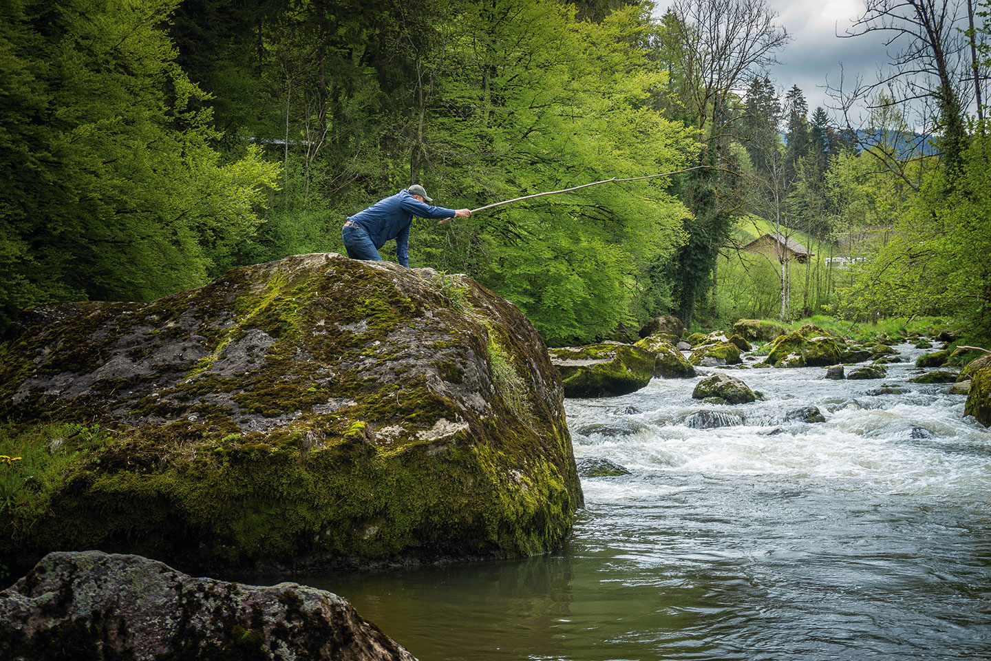 Unser Versuch am mittelgrossen Forellengewässer gestaltet sich für diese Art der Fischerei ziemlich anspruchsvoll. Vermutlich war der besuchte Fluss eher zu gross und wir gehen davon aus, dass die limitierte Reichweite in einem kleineren Fliessgewässer deutlich weniger ins Gewicht gefallen wäre. Wir können uns gut vorstellen, während Wanderungen spontan eine Rute zu schnitzen und zu versuchen, das Picknick an der Feuerstelle mit frischem Fisch zu bereichern. Das Schweizer Freiangelrecht bietet an den Seen zahlreiche Gelegenheiten, um zur üppigen Sommerzeit am Wasser spontan erfolgreich zu sein. Um Sonnenbarsche, Egli oder Weissfische zu fangen, braucht es vielfach wirklich nicht mehr als nur etwas Schnur und einen Haken in der Tasche. Gerade wenn man mit Kindern unterwegs ist, kann man ihnen damit so manches Highlight am Wasser bescheren. Nicht selten schlägt dabei das Fischervirus zu womit der Grundstein für eine weitere Passion für das Wasser und seine Bewohner gelegt ist.