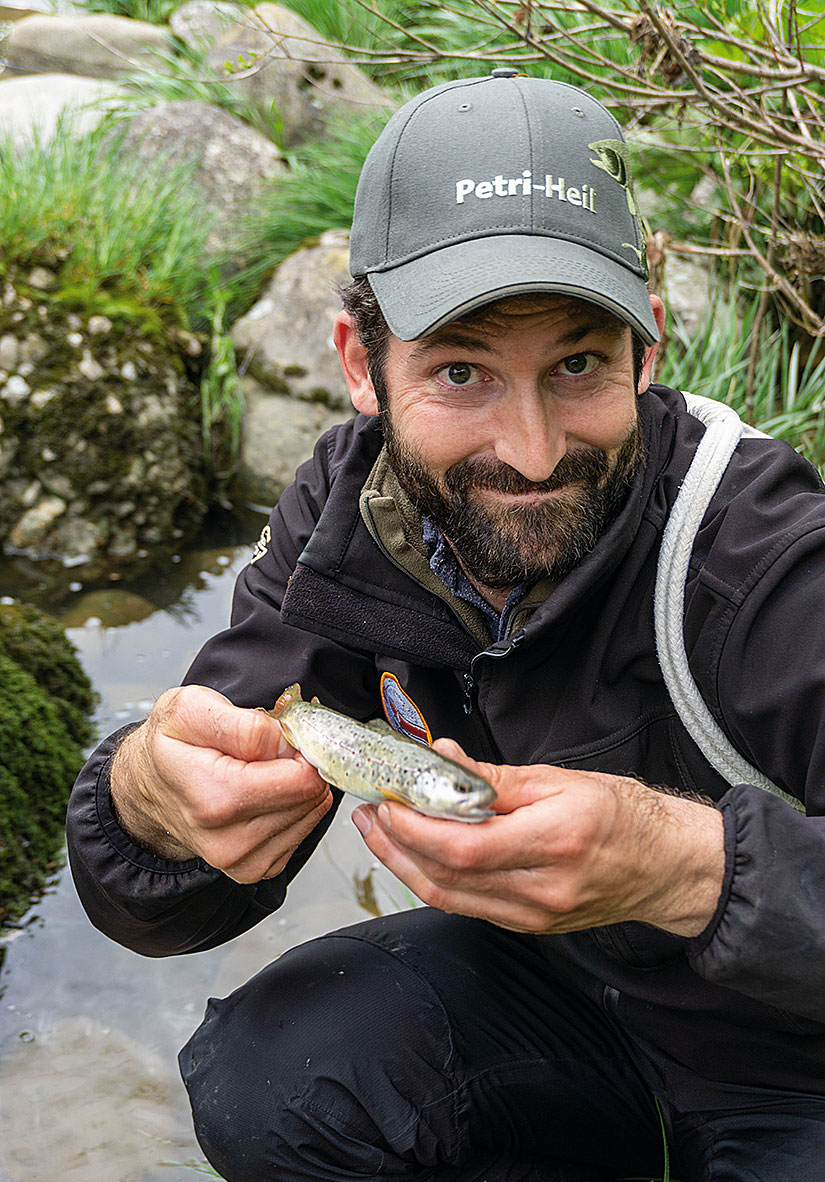 Ruben befischt derweil einen Abschnitt mit vielen grossen Steinen und lässt seinen Wurm jeweils direkt unter der Spitze in den Strömungsschatten der Hindernisse sinken. Schliesslich steigt endlich eine kleine Fario ein und Ruben freut sich, dass sich trotz der einfachen Mittel eine der scheuen Forellen verführen lässt. Leider ist die Zeit fortgeschritten, doch Ruben kann sich kaum losreissen und ist überzeugt, dass sich mit dieser minimalistischen Ausrüstung auch ein richtig guter Fisch fangen lässt. Wenn nicht heute, dann bestimmt ein anderes Mal. Dieses Fischen macht mit etwas Übung nämlich immer mehr Spass und hat Suchtpotenzial.