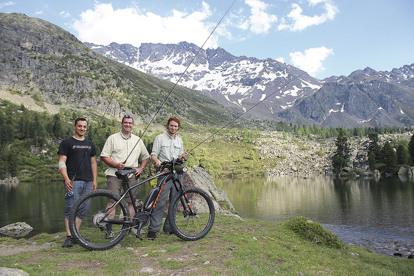 Flavio Lardi vom Fischerhotel «La Romantica» in Le Prese / GR machte mir die Idee, mit E-Bikes in den Bergen zu fischen, folgendermassen schmackhaft: «Wir fahren mit E-Bikes ins Hochgebirge, wo wir Berggewässer befischen – Bergseen und -flüsse – teilweise auf 2600 Meter über Meer. Unberührt und wahrscheinlich völlig alleine.» Mal ehrlich: Wenn Sie so ein Angebot erhielten: Würden Sie ablehnen? Eben – tat ich auch nicht.