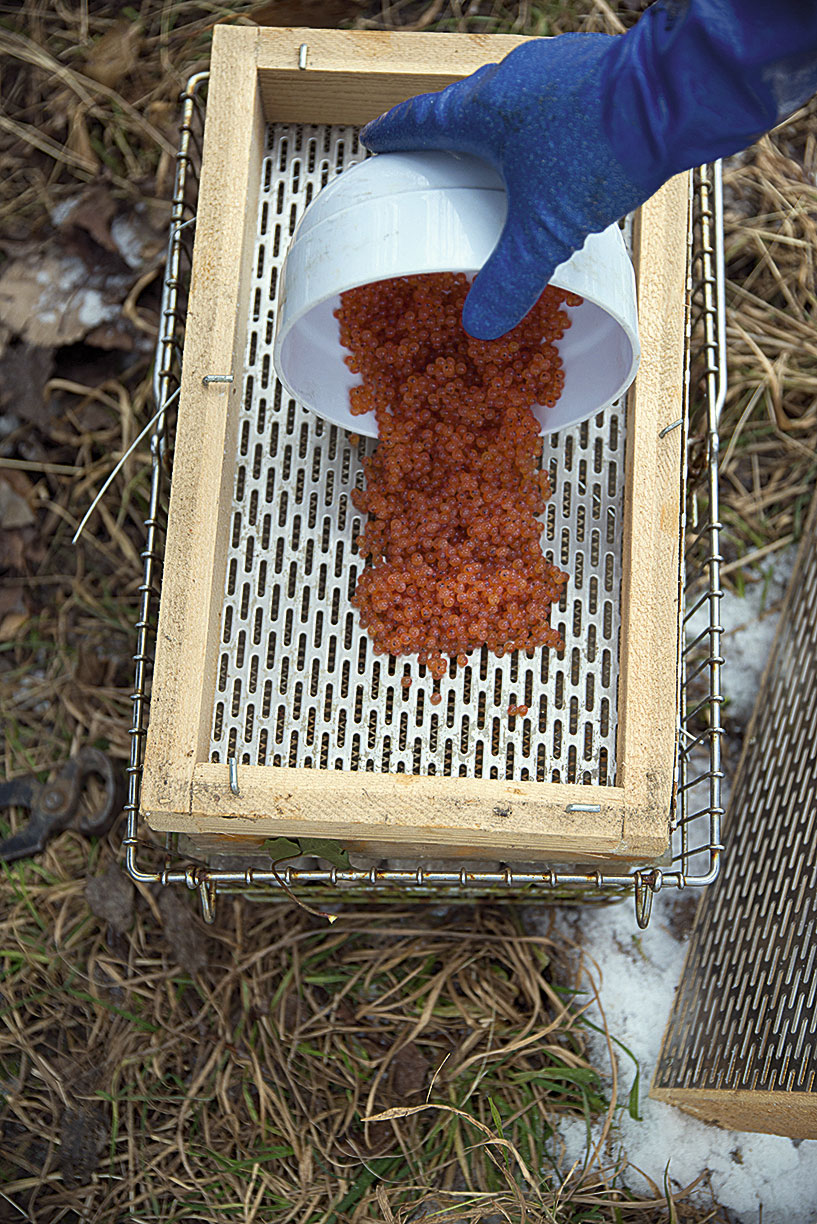 Für einige unserer heimischen Fischarten ist es schwierig bis unmöglich sich in ihren angestammten Gewässern zu vermehren. Die Gründe dafür sind zahlreich. Bei der Bachforelle sind es unter anderem Wanderhindernisse und verdichtete Flusssohlen. Da man weiss, dass Besatzmassnahmen umso erfolgreicher sind je, früher der Besatz ins Wasser kommt, ist das Vergraben von befruchteten Eiern eine naheliegende Praxis.