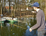 In der Zeit zwischen Ende Juli und Ende September stelle ich den Egli gerne mit Skirted Jigs, also Fransenjigs nach. Und das hat mehrere Gründe: Einer ist die Art und Weise des Fischens. Wenn das Wasser mehr als 25 Grad warm und die Lufttemperatur ebenfalls nicht zur Abkühlung beiträgt, suchen die Fische – genauso wie die meisten Fischer – Schatten auf. Diesen können beispielsweise Bäume oder Bauwerke wie Brücken sowie tiefes Wasser spenden. In meinen Hausgewässern bevorzugen die Fische eher Stege mit langen Pfählen, an denen Boote liegen. Der Schatten der Boote spendet den Fischen nicht nur etwas Abkühlung, sondern auch eine perfekte Rundumsicht. Im Übrigen sind es nur wenige Wochen im Jahr, in denen die Fische hier stehen. Im restlichen Verlauf des Jahres bleibt mir noch genug Zeit, die Stachelflosser an anderen Stellen mit Crank- oder Twitchbaits zu fangen.