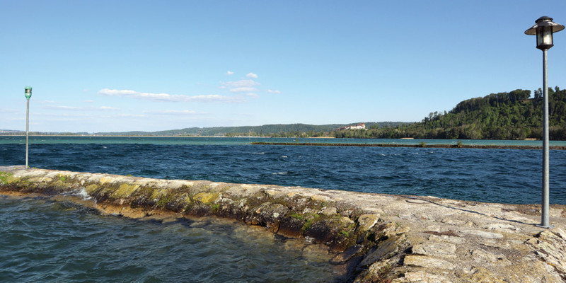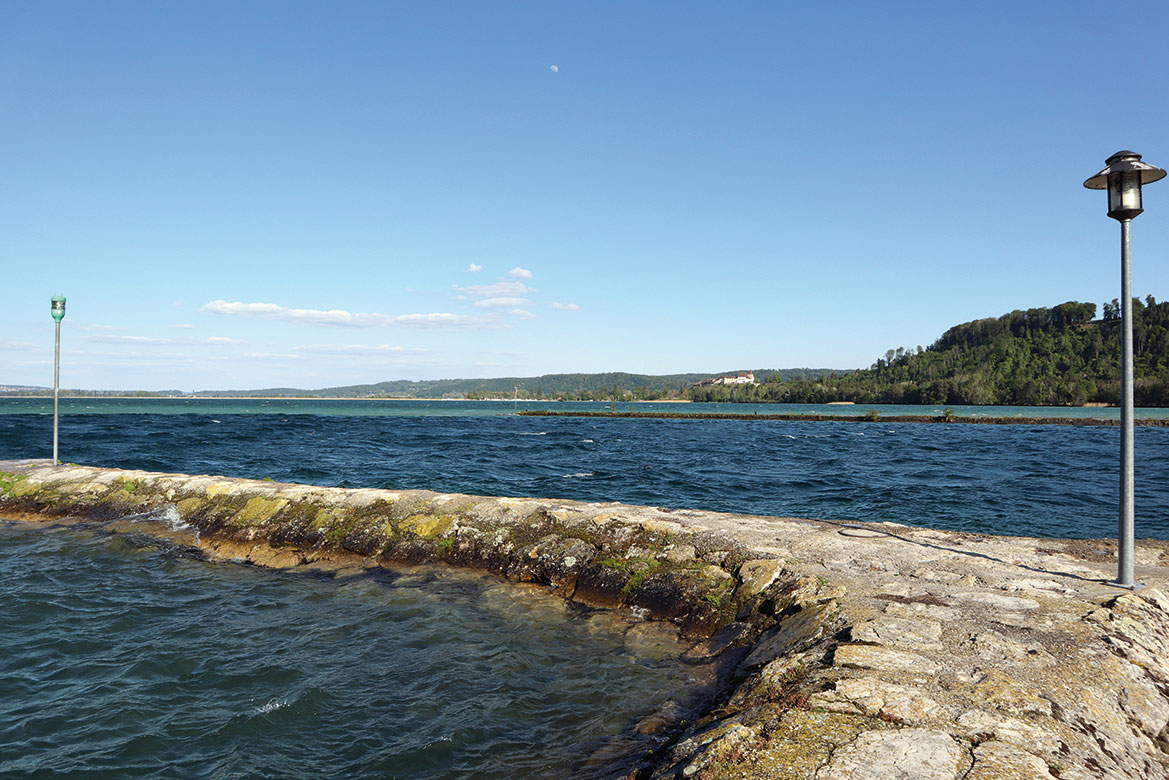 Von der Mole aus wirft man auf die üblichen 3 Meter Tiefe. Hechte und Flachwasser-Egli sind zeitweise in grosser Zahl vor dem Hafen und schlagen sich die Bäuche mit Maifliegenlarven voll. Auch ist man hier bei Bise etwas windgeschützter als auf der Nordseite.