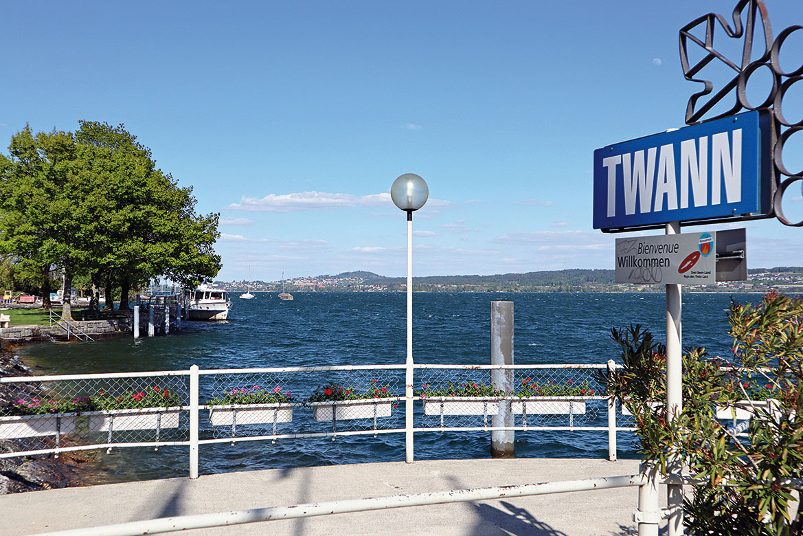 Auch in Twann kann man an einigen Orten optimal zum Wasser kommen und viele Stellen abfischen. Um die Anlegestelle Twann kann man gut den Egli und Hechten nachstellen. Die Kante ist nicht direkt beim Ufer, sondern etwas entfernt. Im flachen Wasser steigen Egli häufig auf Wobblern ein. Im Sommer rauben hier die Egli in grösseren Trupps, wenn sie aus der Tiefe die Kleinfische an die Oberfläche treiben. Dann schlägt die Stunde der Oberflächenwobbler. Und wenn sie mal nicht so aktiv sind, kann man an den krautfreien Stellen das eine oder andere Egli mit dem Carolina- oder Texas-Rig an den Haken bringen.