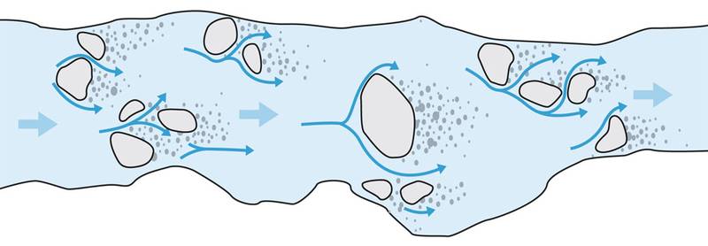 Das Ziel beim Einsatz von Störsteinen ist die Schaffung von mehr Strömungsvielfat. Diese führt im Idealfall zu einer abwechslungsreicheren Sohlenstruktur.
