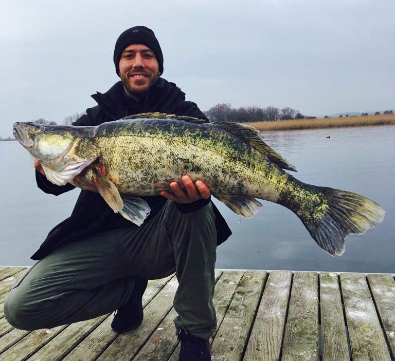 Kerim Niederer aus Kreuzlingen berichtet: «Ich fischte mit meinem Kumpel Renato auf Felchen. Es lief nicht besonders gut, also machte ich ein paar Würfe mit meiner Spinnrute. Wir wollten uns schon auf den Heimweg machen, als sich meine Rute bog! Nach einem anständigen Drill kam dieser riesige Zander zum Vorschein. Renato versuchte ihn zu feumern, doch der Feumer brach auseinander. Zu zweit konnten wir den Fisch dann ins Boot hieven. Verwendetes Gerät: Shimano Beastmaster-Rute, Shimano Biomaster 4000-Rolle, Sunline Geflochtene, Hardmono Vorfach, Savage Gear Real Eel.»