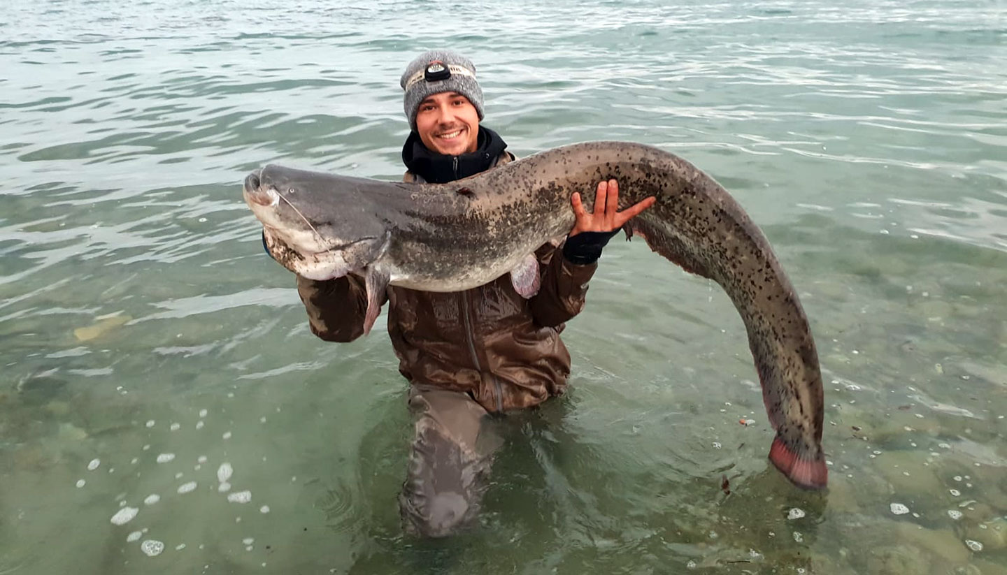 Am verregneten 2. September fischte Yannick Hollenstein aus Arbon mit zwei Freunden auf Zander. Nach einigen Würfen spürte er gegen 8.15 Uhr einen Widerstand. Der vermeintliche Hänger begann plötzlich loszuziehen und zu kämpfen. Nach längerem aufregendem Drill mit eher feiner Ausrüstung bekamen sie den Wels erstmals zu Gesicht. Sie staunten über den kapitalen Brocken! Fischerfreund Roberto landete den Wels von Hand. Dieses Erlebnis wird Yannick nicht so schnell vergessen. Sein Dank gilt Roberto und Benj fürs Helfen. Verwendetes Gerät: Westin Powershad-Rute 2,7 m, Shimano Stradic CI4 2500-Rolle, 0,12er-Daiwa Tournament Braid-Geflochtene, 0,35er-Fluorocarbon, Keitech Easy Shiner Lime Chartreuse-Gummifisch.