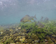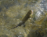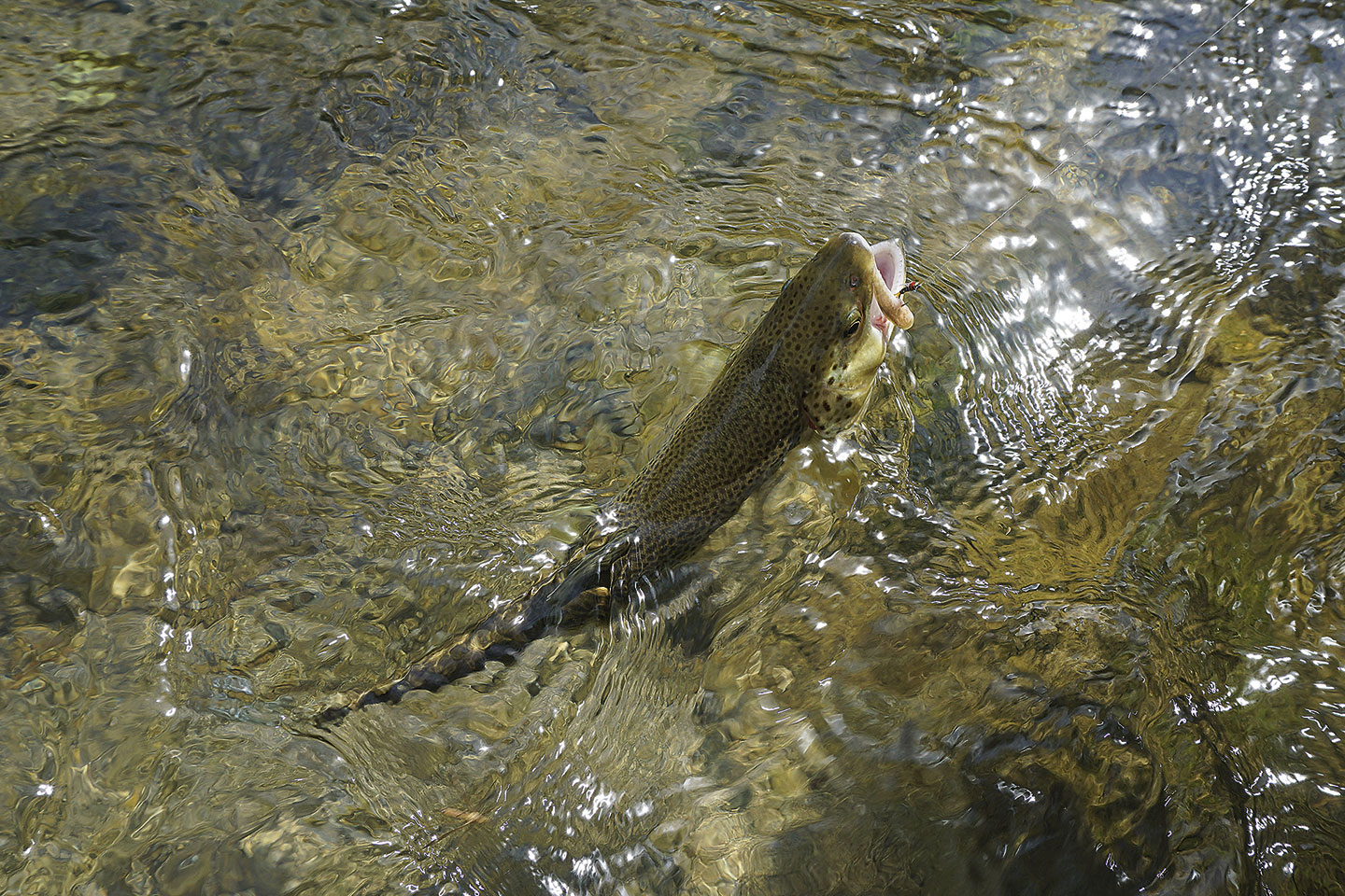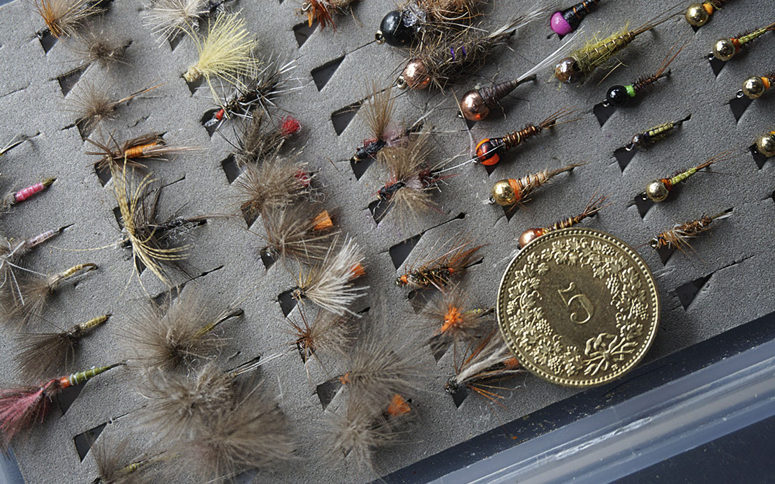 Aber zuerst müssen die Fische mal steigen. Dies ist am ehesten am früheren Morgen und ab dem späteren Nachmittag der Fall. Wenn die Verhältnisse optimal sind, gibt es indessen auch untertags gute Beisszeiten und man weiss kaum mehr, welchen Ring man zuerst anwerfen soll. Da man die Fische meist im Wasser sehen kann, erkennt man mit etwas Übung, welche Fische aktiv auf Nahrungsaufnahme aus sind und welche passiv am Flussgrund verharren. Sind sie aktiv auf Nymphen aus, «schwänzeln» sie unruhig am Flussgrund mit kleinen Ausbrechern auf die Seiten. Zu solchen Fischen muss die Nymphe hin! Fische, die Oberflächennahrung nehmen, kann man schon beim Aufsteigen beobachten; man sieht auch gut, wenn sie die angebotene Fliege einschlürfen oder im letzten Moment abdrehen und sie verweigern. Spannung pur in diesen unglaublichen Momenten!