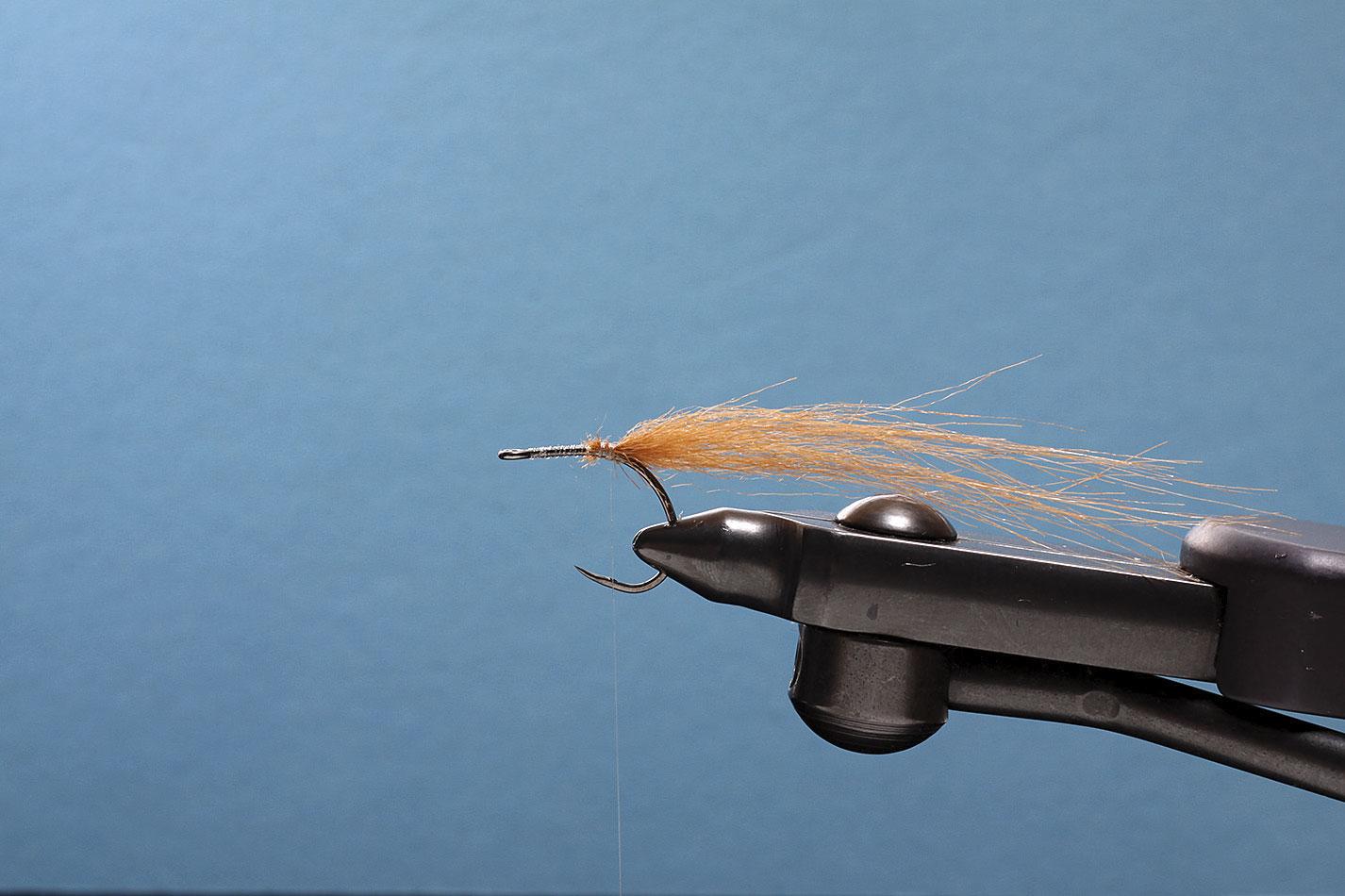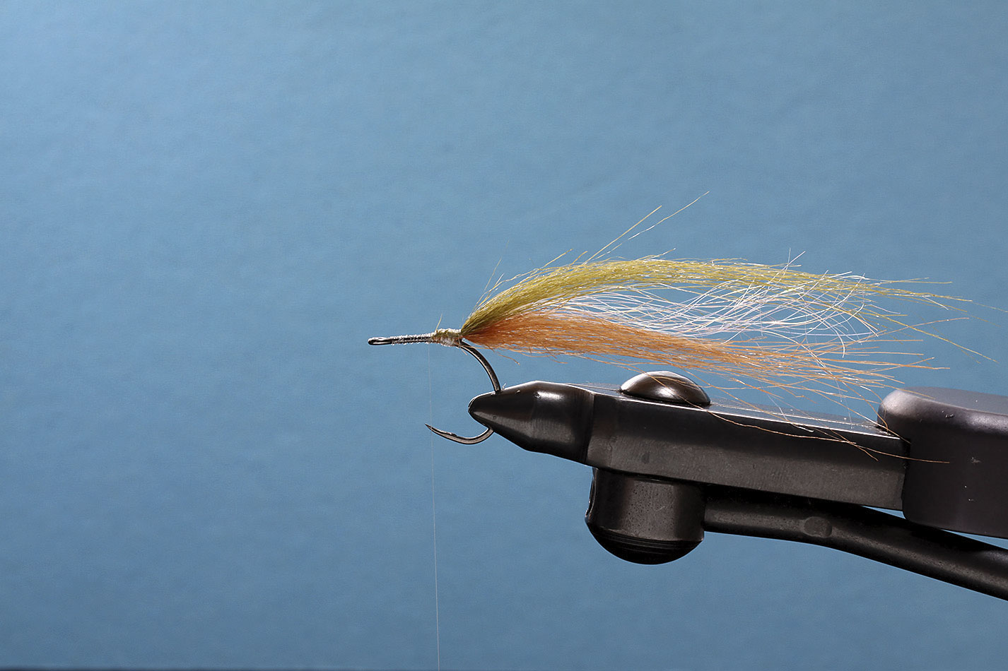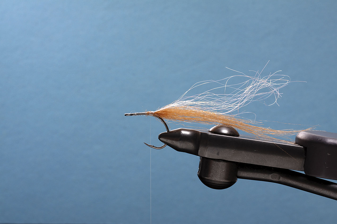Den Schwanz und Körper binden wir mit Craft Fur. Dies ist ein weiches, synthetisches Material, das im Wasser lebendig spielt. Es hat wie ein natürliches Fell Unterwolle, dank der man die Form und das Volumen der Fliege beim Binden einfach steuern kann.