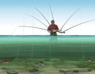 Die Ausrüstung ist einfach. Man braucht allerdings eine etwas längere Rute als üblich. 9’ sind gut, 10’ besser. Je leichter die Rute ist (Klasse 4 ist ideal), desto feinfühliger und effektiver gelingt die Sache. Jede Schwimmschnur ist richtig; eigentlich ist sogar egal, ob die Schnurklasse stimmt, denn alles hängt allein vom Vorfach ab!