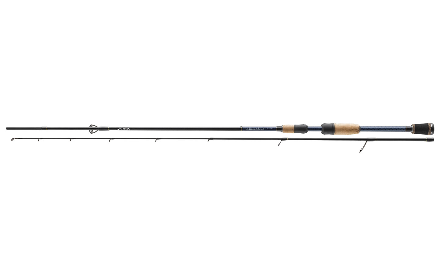 Die neuen zweiteiligen «Silver Creek»-Light-Spinnruten ergänzen die beliebte «Silver Creek»-Serie im Ultraleicht-Spinnfischen um vier weitere Modelle mit einer etwas kräftigeren, eingespleissten Vollkohlefaserspitze. Die Rute mit dem hochwertigen «High-Modulus»-Kohlefaserblank ist mit neun Titanium-Oxyd-Ringen, einem Skeleton-Rollenhalter und einem ergonomischen Korkgriff ausgestattet. Damit vergrössert Daiwa ihre Rutenserie mit attraktivem Preis-Leistungs-Verhältnis, die Profis wie auch Einsteiger gleichermassen anspricht. Ideal für die hochmobile Fischerei auf Egli, Alet und Hecht mit kleinen Gummifischen von 5 – 10 Zentimetern und kleinen Wobblern bis 10 cm Länge. Die Rute ist mit einem Wurfgewicht von 5 – 21 Gramm in vier verschiedenen Längen (180 cm, 205 cm, 220 cm und 235 cm) erhältlich.