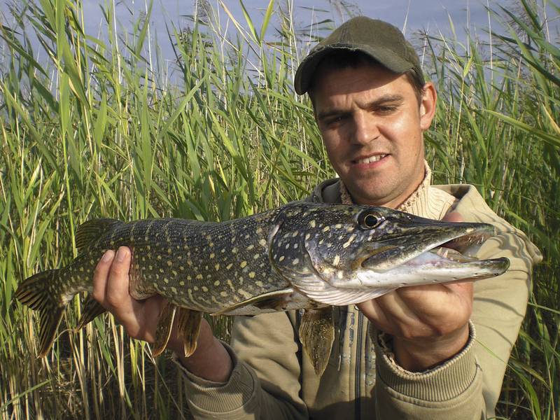 Der Hecht hat vor kurzem in den sich schneller erwärmenden Flachwasserzonen gelaicht. In natürlichen Seen sind das in der Regel die mit Schilf bewachsenen Uferbereiche, die häufig flach sind und nur langsam in tieferes Wasser abfallen.
