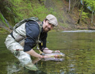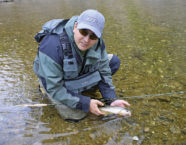 In den Oberläufen der Gewässer des Bregenzerwaldes gibt es keinen Fischbesatz. Claus Elmenreich: «Jeder Fisch, der hier gefangen wird, ist ein Wildtier durch und durch. Manchmal sind die Forellen etwas zickiger als anderswo, legen durchaus auch Beisspausen ein. Aber dafür sind es echte Naturburschen, die noch nie einen Zuchtbetrieb von innen gesehen haben und perfekt angepasst sind ans Leben hier im Fluss.»