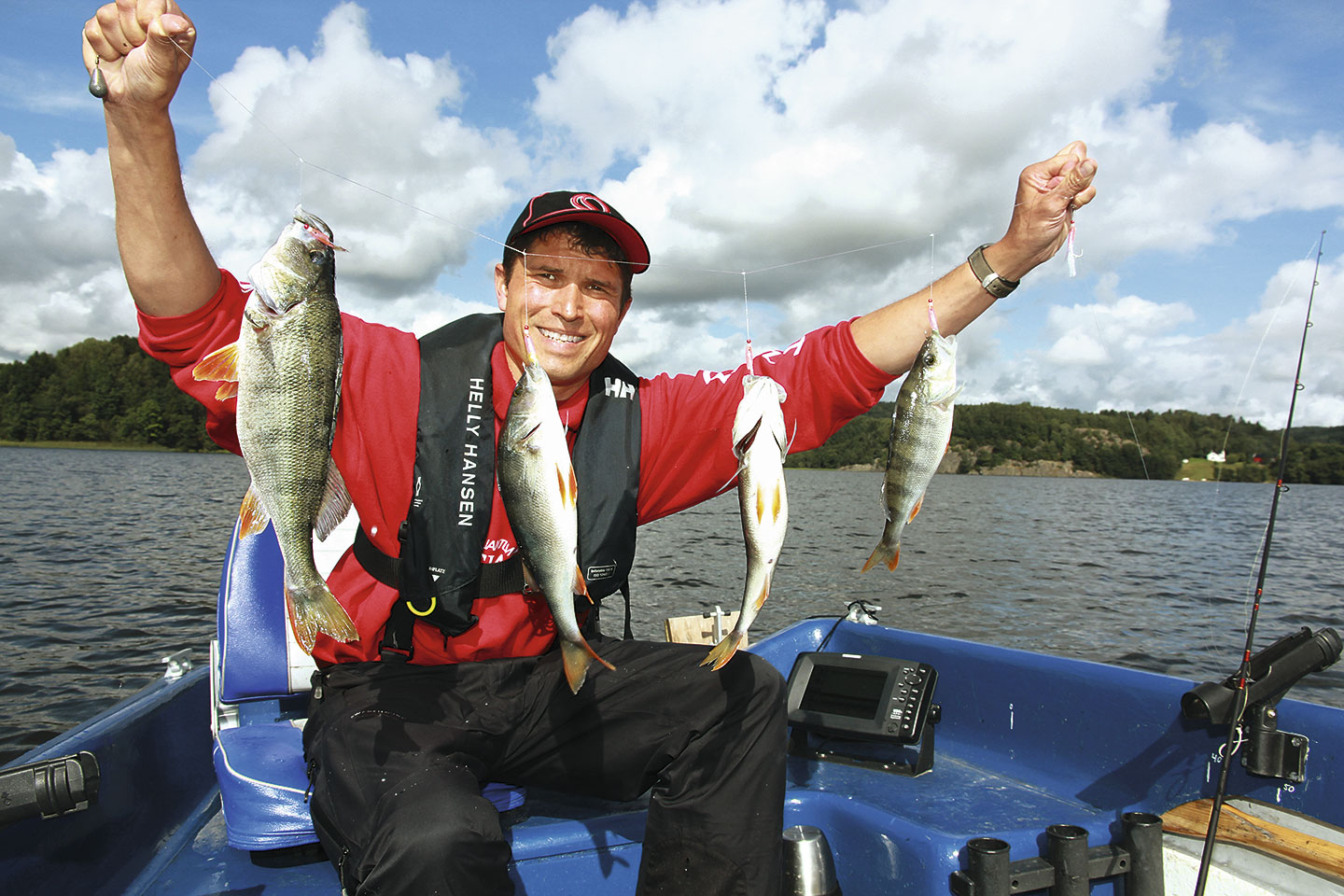 Ein Egli kommt selten allein. Und weil die Stachelflosser gern in Schwärmen unterwegs sind, lassen sich mit Montagen mit mehreren Haken oft auch mehrere Fische gleichzeitig landen. Hegenen mit fischähnlichen Ködern dran sind die richtige Wahl, dabei spielt die Farbe eine untergeordnete Rolle.
