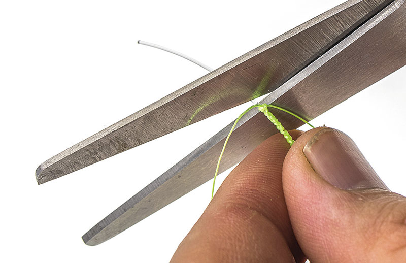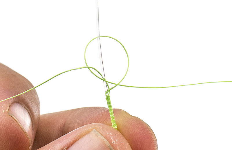 Wenn hier in diesem Heft vor zwei Monaten der Albright-Knoten als (vielleicht) bester Knoten aller Zeiten gepriesen wurde, so darf der FG-Knoten den Platz für den besten Verbindungsknoten zwischen Vorfach und geflochtener Hauptschnur für sich beanspruchen. Wobei eine japanische Webseite den FG-Knoten nur auf den dritten Platz verweist, die vorderen Plätze allerdings mit Hilfsmitteln gebunden werden müssen. Für was FG genau steht, ist nicht genau geklärt. Ob das «F» für das Lieblings-Fluchwort der Amerikaner steht und FG damit frei als «verdammt guter» Knoten übersetzt werden kann, oder ob es eher um den Halt in den feinen Kerben geht, die bei hohem Zug im Mono entstehen (Fine Grip), ist letztlich nebensächlich. Es ist durchaus möglich (und auch mir passiert), dass die ersten Versuche in die Hose gehen. Aber deswegen nicht gleich aufgeben! Wichtig ist, den Knoten richtig gut anzuziehen, und wenn er dann mal hält, hält er bombenfest. Wem das jetzt alles zu kompliziert war, der kann auf Youtube Hilfe bekommen, es gibt eine ganze Menge an Tutorials.