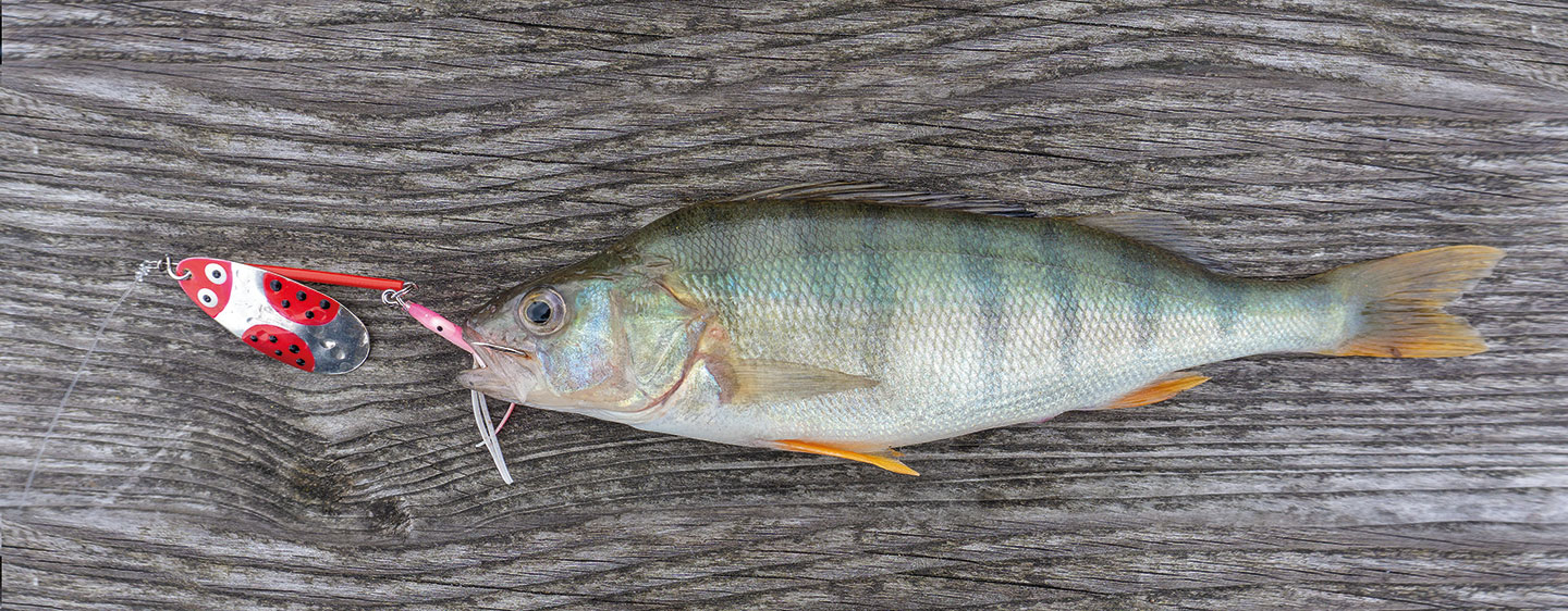 Meistens fische ich das Käferli wie einen Schleppköder, d. h. ich kurble die Montage, sobald sie auf der gewünschten Tiefe ist, mit möglichst ruhiger Rutenführung, gleichmässigen Umdrehungen und ohne Unterbrüche zu mir, bis der Biss erfolgt und ich anschlagen kann. Versuche mit ruckartigen Jigg-Bewegungen haben sich mit dem Käferli als nicht erfolgreich erwiesen. Entscheidend ist es, das richtige Tempo zu erwischen, damit sich das Blatt des Löffels schnell genug um die eigene Achse dreht, aber nicht so schnell, dass die zu schnellen Umdrehungen eine Scheuchwirkung zur Folge haben. Hat man die richtige Geschwindigkeit einmal gefunden, äussert sich das in einem leichten Flattern der Rutenspitze. Will ich für einmal trotzdem etwas mehr Action in die Sache bringen, gibt es aber eine weitere Form der Köderführung, die die Anzahl der Bisse zwar etwas verringert, dafür definitiv mehr Grossfischpotenzial hat. Ich nenne sie den «sterbenden Schwan»: Ich drehe den Löffel wie oben beschrieben ein, öffne zwischendurch aber den Rollenbügel, lasse die Montage 2 bis 5 Meter absacken, schliesse den Bügel wieder und erwecke sie danach mit regelmässigen Kurbelumdrehungen sachte wieder zum Leben. Meistens erfolgt der Biss kurz nachdem ich wieder Tuchfühlung aufgenommen habe und der Löffel sein charakteristisches Flattern zeigt.