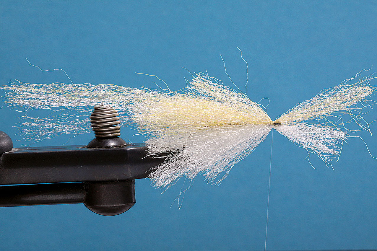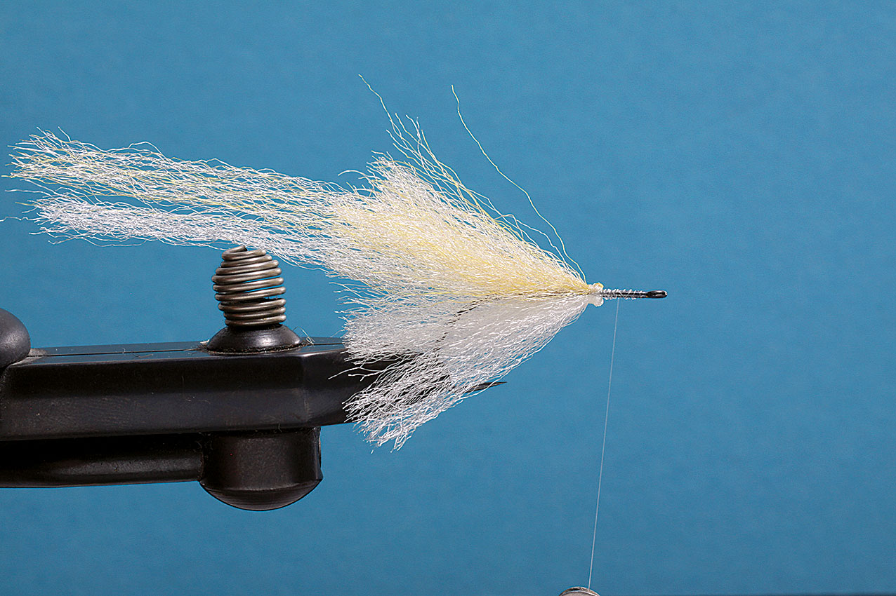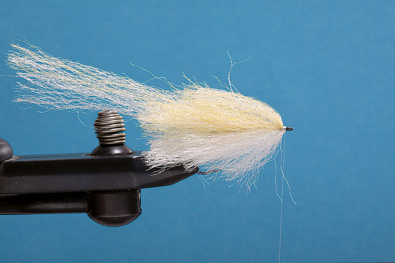 Für grössere Fliegen eignet sich das etwas steifere SF Blend besser als die EP Fiber. Man kann diesen Streamer komplett aus den Kunstfasern binden. Ein schönes Spiel gibt auch ein Schwanz aus Craft Fur oder aus natürlichen Materialien wie Fuchshaar oder Schlappen. Ihrer Kreativität sind da keine Grenzen gesetzt.