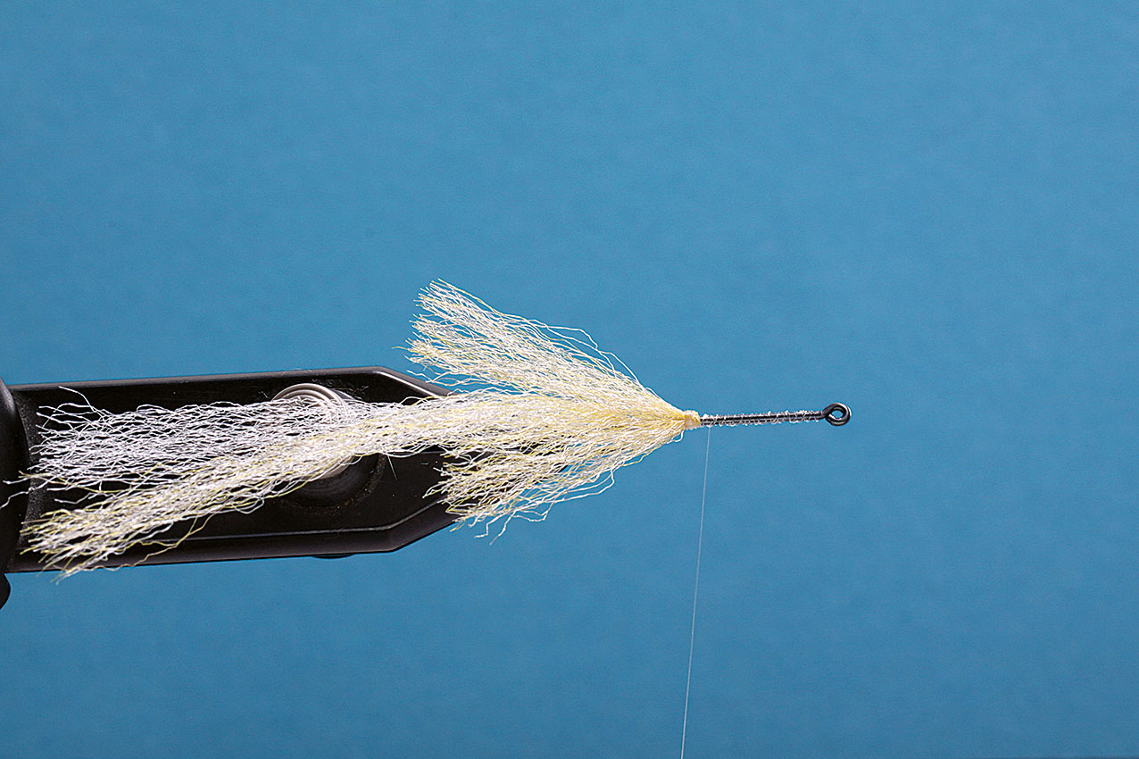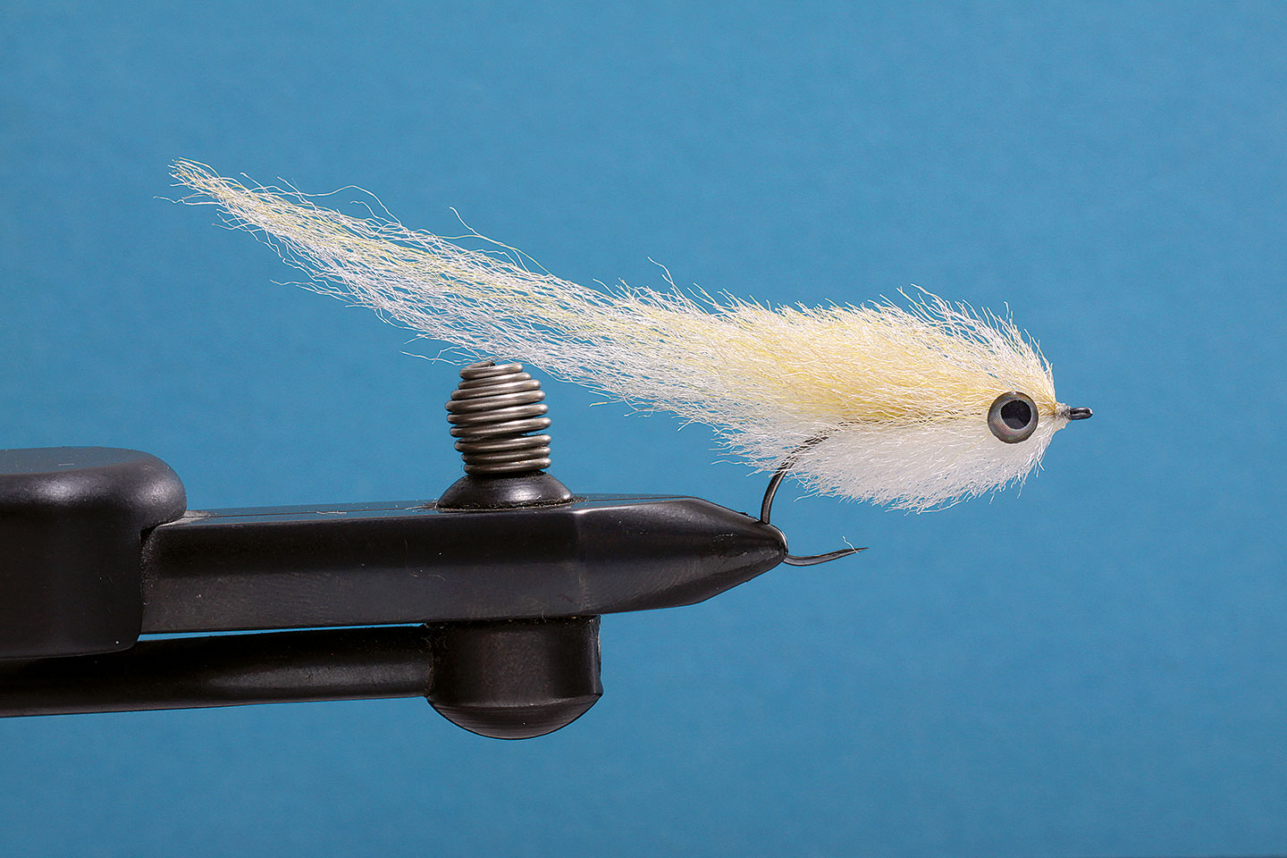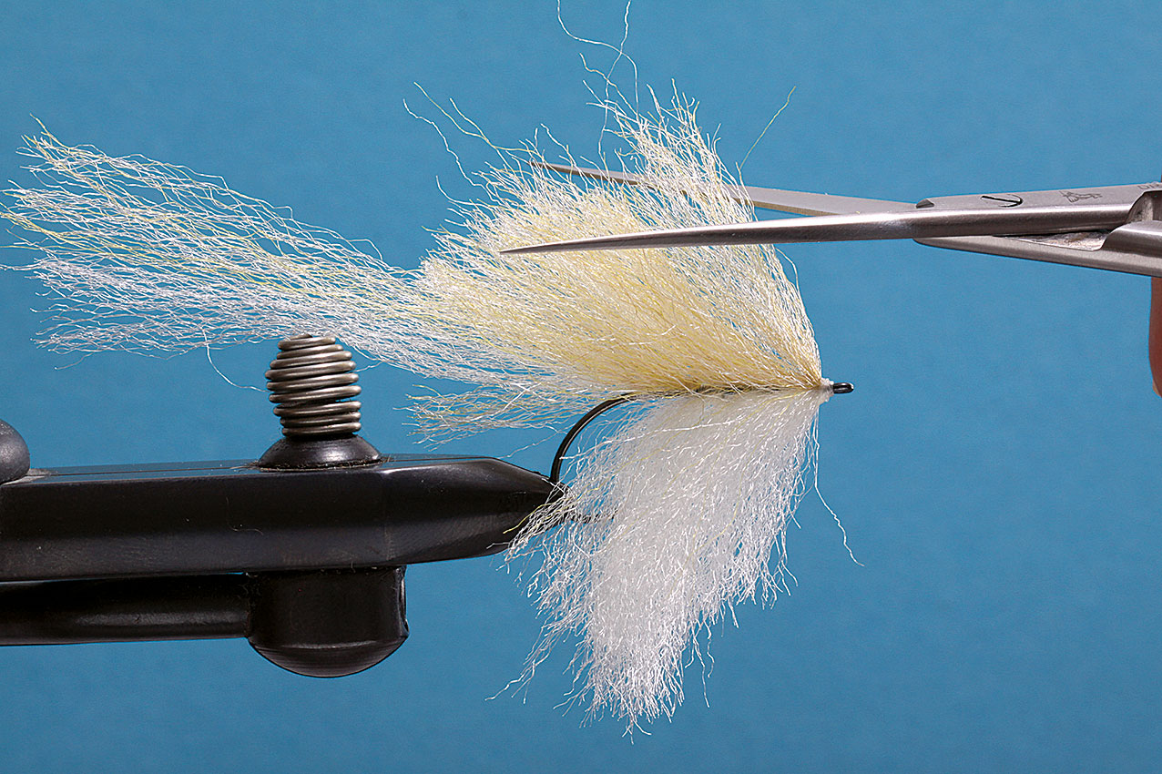 Für grössere Fliegen eignet sich das etwas steifere SF Blend besser als die EP Fiber. Man kann diesen Streamer komplett aus den Kunstfasern binden. Ein schönes Spiel gibt auch ein Schwanz aus Craft Fur oder aus natürlichen Materialien wie Fuchshaar oder Schlappen. Ihrer Kreativität sind da keine Grenzen gesetzt.
