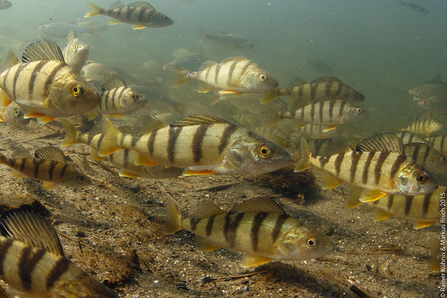 Wer ist dieser Fisch, der bei uns so gerne als Filet auf dem Teller landet? Vom Muster her ähnelt er einem Zebra, zieren doch Querstreifen seinen Körper. Auffällige Farbtupfer sind die orangen Bauch- und Schwanzflossen, überhaucht von schimmerndem Messing, schillerndem Grün und manchmal sogar Himmelblau. Die beiden Rückenflossen wirken majestätisch und haben es in sich. Dank seiner Konstitution weiss er sich zu wehren, beziehungsweise vor Fressfeinden zu schützen: Ein Teil der Flossen hat spitze Stacheln und auf den Kiemendeckeln thronen Dornen.