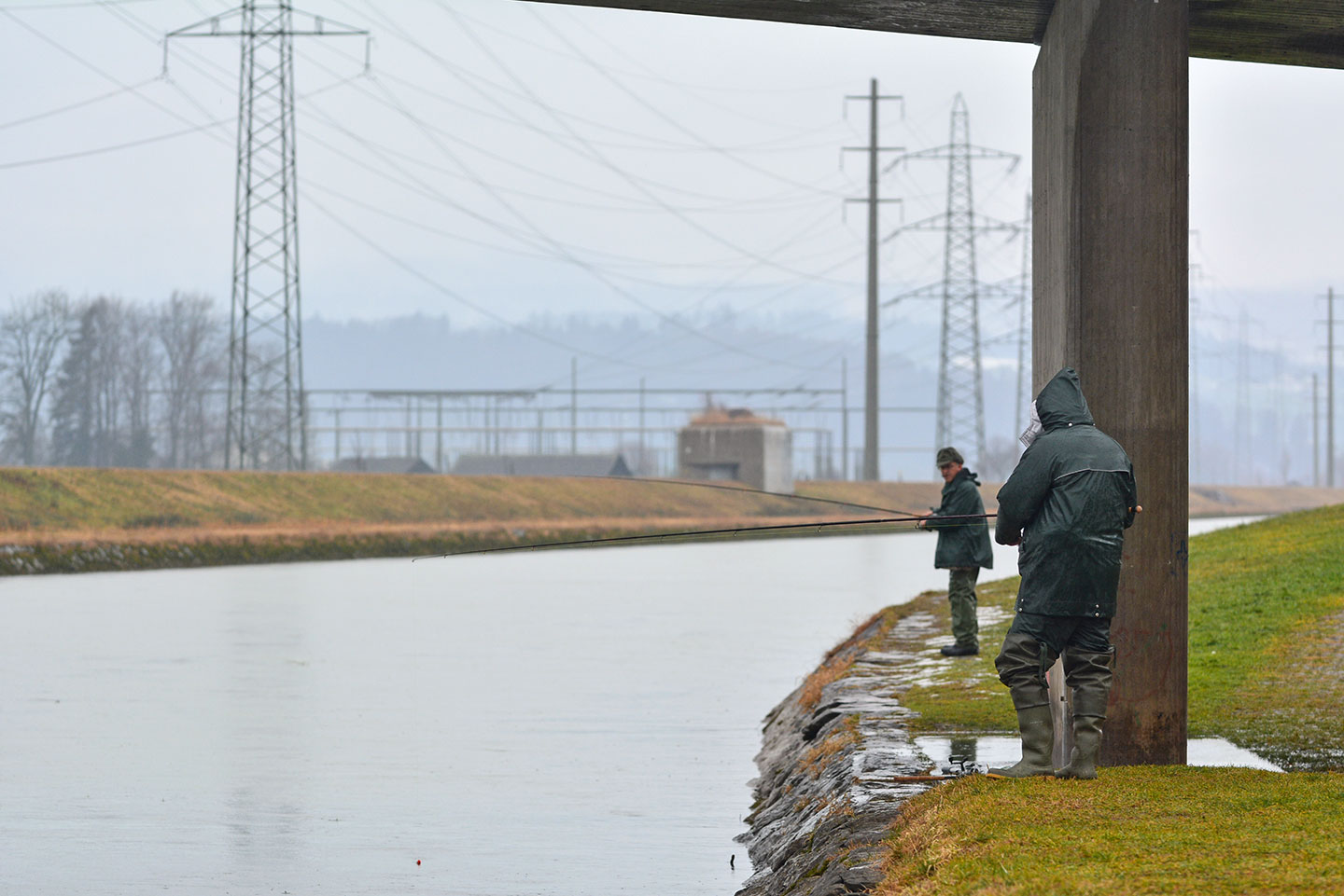 «Wenn das Wasser am Linthkanal innert kurzer Zeit fast 30 Zentimeter ansteigt, ist dies kein gutes Zeichen», meint ein langjähriger Patentbesitzer. Mit gesenktem Kopf und eingehüllt in seinen trendigen Camouflage-Poncho trotzt er seit Stunden dem Dauerregen und diesem vermeintlichen Grund, weshalb die Bisse ausbleiben: «Wochenlang trocken und dann ausgerechnet heute dieses Wetter!» Wie viele andere wechselt er an diesem Tag nicht nur die Köder, sondern auch den Platz.