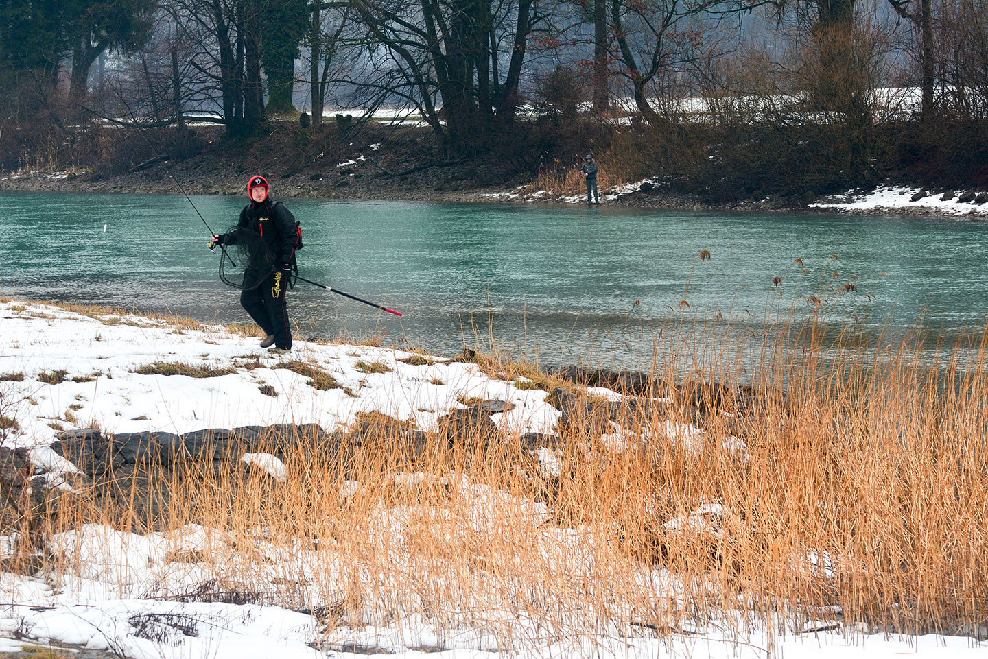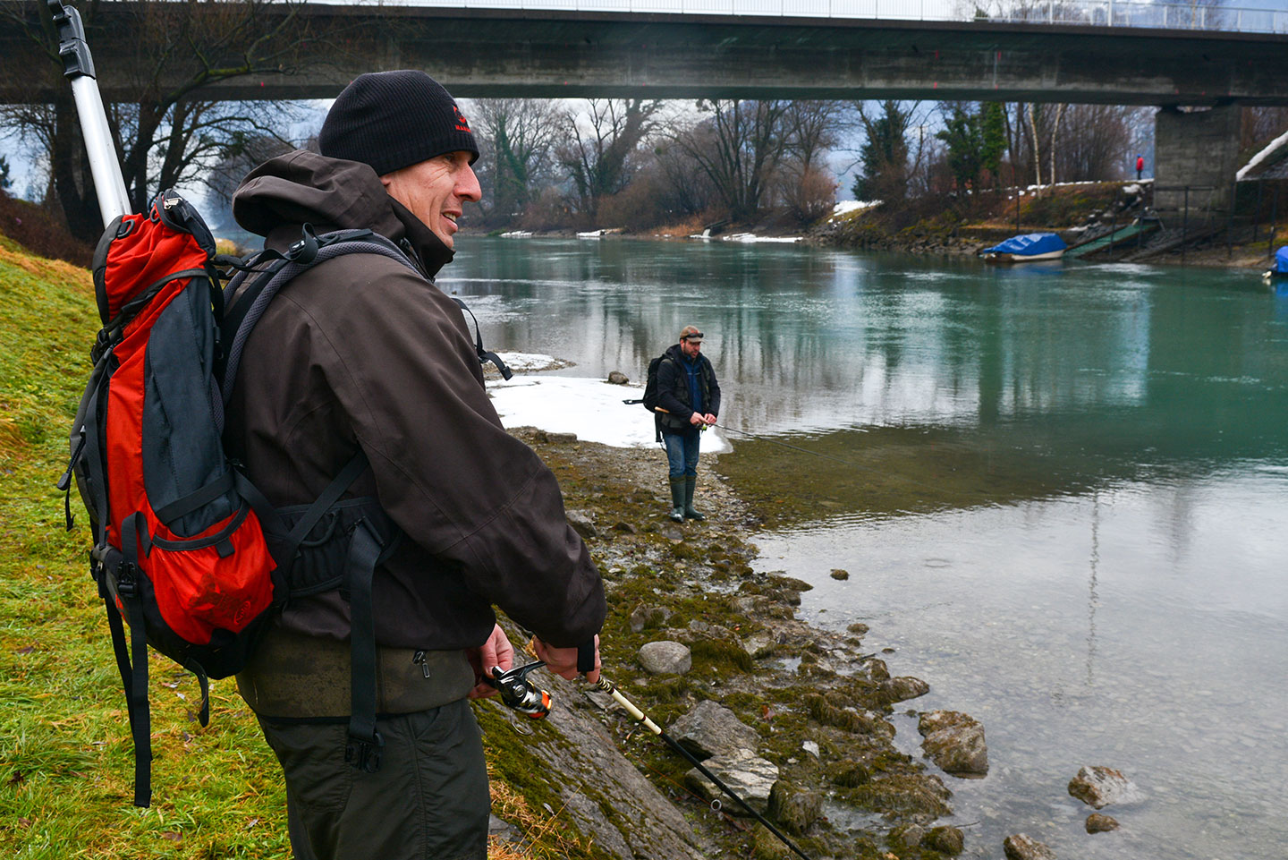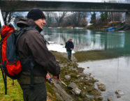 Ein gutes Dutzend Fischer nerve ich mit der kürzesten aber sehr aktivierenden Frage: «Und?» Nach kurzer emotionaler Bedenkzeit vernehme ich dann ein brummiges Gemurmel Richtung Flussmitte, aber meistens ein freundliches Lächeln. Diese Antworten reichen mir und ich mache mich nach ein paar ermutigenden Worten auf zum nächsten Kollegen.