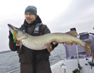 Die wichtigste Bremse bei der Baitcastrolle ist neben der eigentlichen Rollenbremse die Wurfbremse. Hier gibt es verschiedenste Systeme auf dem Markt. Grundsätzlich kann man sagen, dass eine Rolle mit Fliehkraftbremse oder kombinierter Fliehkraft- und Magnetbremse leichter zu werfen und speziell für Hardbaits meist die bessere Wahl ist. Nutzt man dagegen leicht zu werfende Köder wie etwa Jigs oder ist geübt im Umgang mit der Baitcastrolle, ist meist die Magnetbremse die bessere Wahl. Es gibt natürlich noch ein paar weitere Anhaltspunkte für die Auswahl der richtigen Rolle. Die Leistung der Drillbremse sollte eurem Zielfisch entsprechen. Für das Hechtfischen sind also durchaus mehr als nur fünf Kilogramm angemessen. Namhafte Hersteller arbeiten hier fast nur noch mit Karbon- oder Karbonhybridbremsen. Sie haben gute Leistungswerte und laufen ruckfreier an. Auch die Schnurfüllung sollte dem Einsatzzweck gerecht werden. Je leichter ihr fischt, desto weniger Schnur ist nötig. Beim schweren Fischen braucht es demnach mehr Schnur von höherem Durchmesser. Hier machen alle Hersteller genaue Angaben zu ihren Rollen. Zu guter Letzt sollte euch die Rolle gut in der Hand liegen. Für letzteres ist die richtige Wahl zwischen Links- oder Rechtshand-Modell entscheidend.