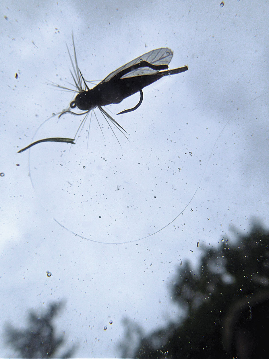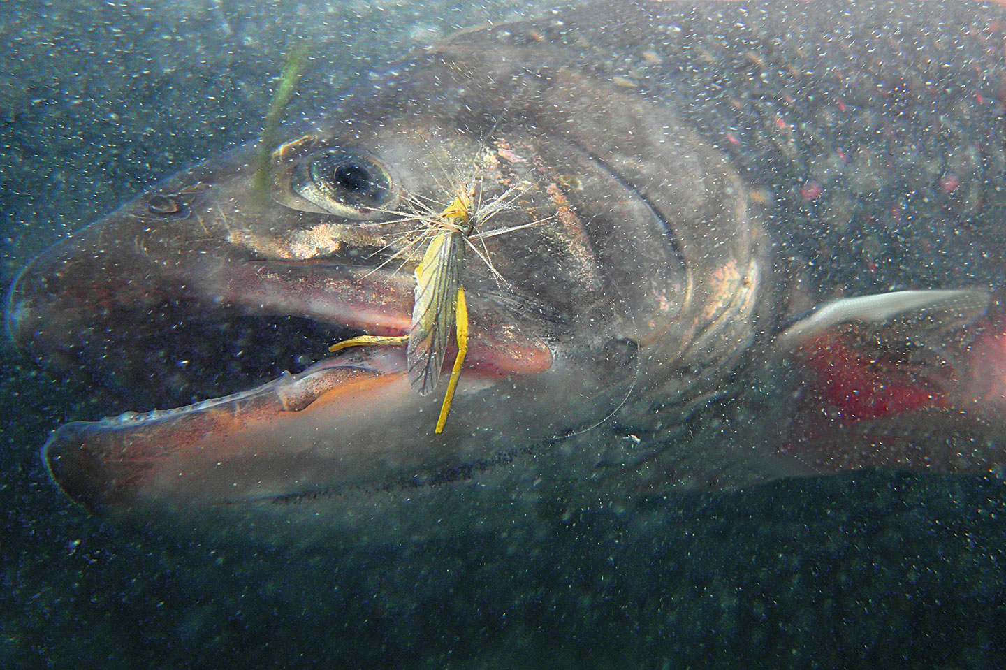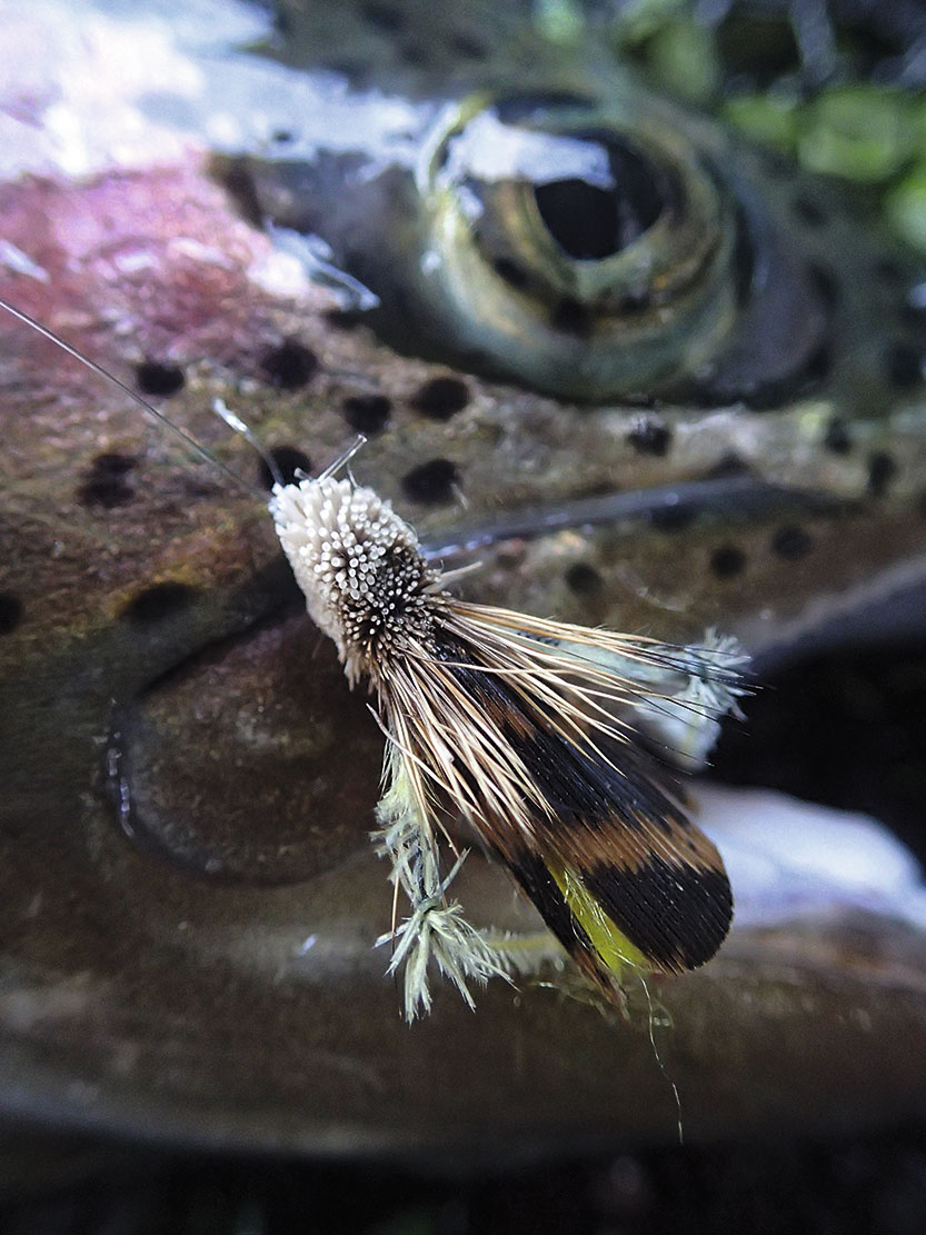 Da war diese prächtige Regenbogenforelle, 1995 in Montana, die die kleine CDC-Eintagsfliege nicht nahm und sich mit «Dave’s Hopper» doch noch verführen liess. Oder in Österreich der gut drei Kilo schwere Bachsaibling, ja, das war auch so ein Fall. Der Fisch stand unter dem Gras am Ufer und ich hielt ihn im ersten Moment für eine Bachforelle. Als der Hopper einen Meter vor ihm landete, schoss er wie ein Torpedo stromauf und schnappte ihn mit einem riesigen Schwall.