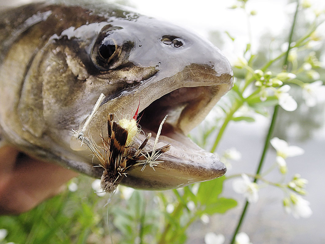• Ausrüstung: Fliegenrute der Klasse 5, schwimmende WF-Schnur, Vorfachspitze 0,18er