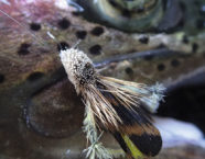 Die brandneuen «Spinfly»-Trockenfliegen von www.1000mosche.it sind nicht für das klassische Fliegenfischen konzipiert, sondern für das Werfen mit einer Spinnrute. Dieser «Ales Hopper» wiegt beispielsweise 1,05 Gramm – das reicht, um ihn mit einer Rute der Ausführung «ultralight» dicht an das andere Ufer des Wiesenbachs zu werfen. Vorteil dieser Fliegen: Es wird kein weiteres (meist störendes) Wurfgewicht (Wasserkugel usw.) benötigt.