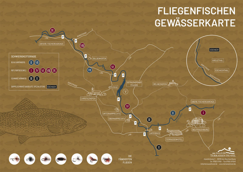 Die Untere Argen, die Ach und die Eschach sind exklusiv reservierte Fliegenfischergewässer für unsere Hotelgäste.