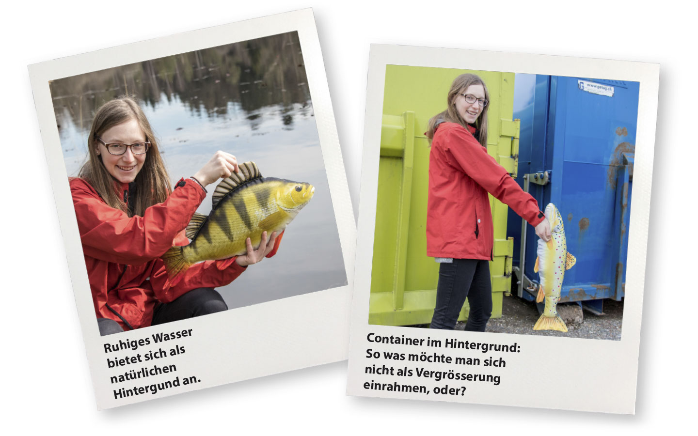 Bei unseren Tipps gehen wir davon aus, dass du den Fisch tierschutzkonform getötet hast, er also nicht mehr zurück ins Wasser soll. Möchtest du den Fisch aus ökologischen Gründen wieder zurücksetzen, solltest du – ebenfalls aus ökologischen Gründen – auf ein Fangfoto verzichten. Profis stehen für solche «lebendige» Fotos zu zweit am Wasser. Während der eine den Fisch drillt, rattert beim anderen die Kamera.