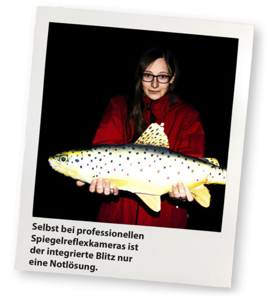 Deine Kamera hält das durch die Linse eintretende Licht auf einem Sensor fest. Ist kein Licht vorhanden, kann die Kamera auch nichts festhalten. Hast du spät in der Nacht einen Fisch gelandet, sitzst du mit deinem Fang sprichwörtlich im Dunkeln. Die internen Blitze und Ledlichter heutiger Kameras sind aber definitiv nur eine Notlösung, und es gibt vieles, das dagegen spricht, diese zu verwenden: Durch die Lichtquelle direkt neben der Linse entstehen unnatürliche Schatten, der Fänger wird geblendet, die metallisch glänzenden Schuppen übersteuern das Bild, und und und… Vorschlag: Mache trotzdem Bilder mit dem Blitz, nimm den Fisch aber nach Hause und mache am nächsten Tag schönere Bilder unter besseren Lichtbedingungen.