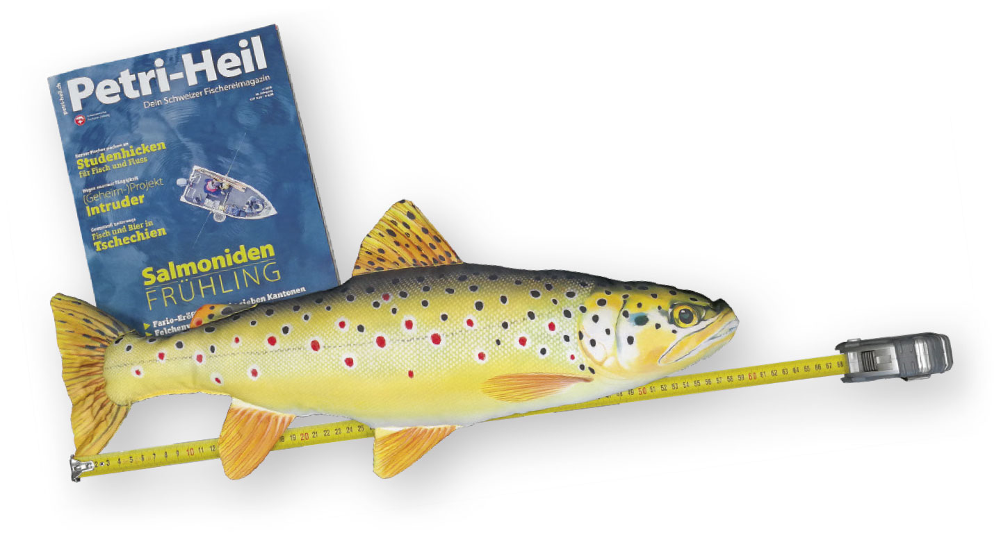 Zum Schluss solltest du natürlich noch Beweis-Fotos mit Massband nicht vergessen. Für unsere Rubrik «Kapitale Fänge» ist dies von grossem Vorteil. Und: Es kann auch sonst immer mal wieder Zweifler geben, die einem den Fangerfolg nicht glauben mögen. Gut, wenn man dann ein Foto mit Massband vorweisen kann, das zweifelsfrei die Fischlänge beweist. Fotografiere dafür Fisch und daneben gelegtes Massband möglichst verzugsfrei direkt von oben und breite die Schwanzflosse natürlich aus.