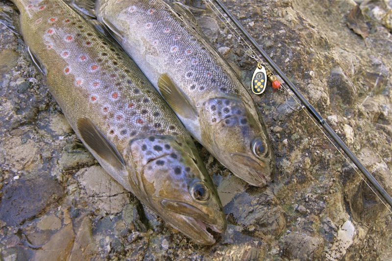 In der Printausgabe von «Petri-Heil» (Nr. 2/2012) stellen übrigens einige passionierte Forellenfischer ihre Spinner-Favoriten vor. Mein persönlicher Spinnertipp ist nicht ein spezielles Modell, sondern der Klassiker unter den Reizfarben: Schwarz mit gelben Punkten (z.B. Vibrax, Mepps Black Fury u.a.).