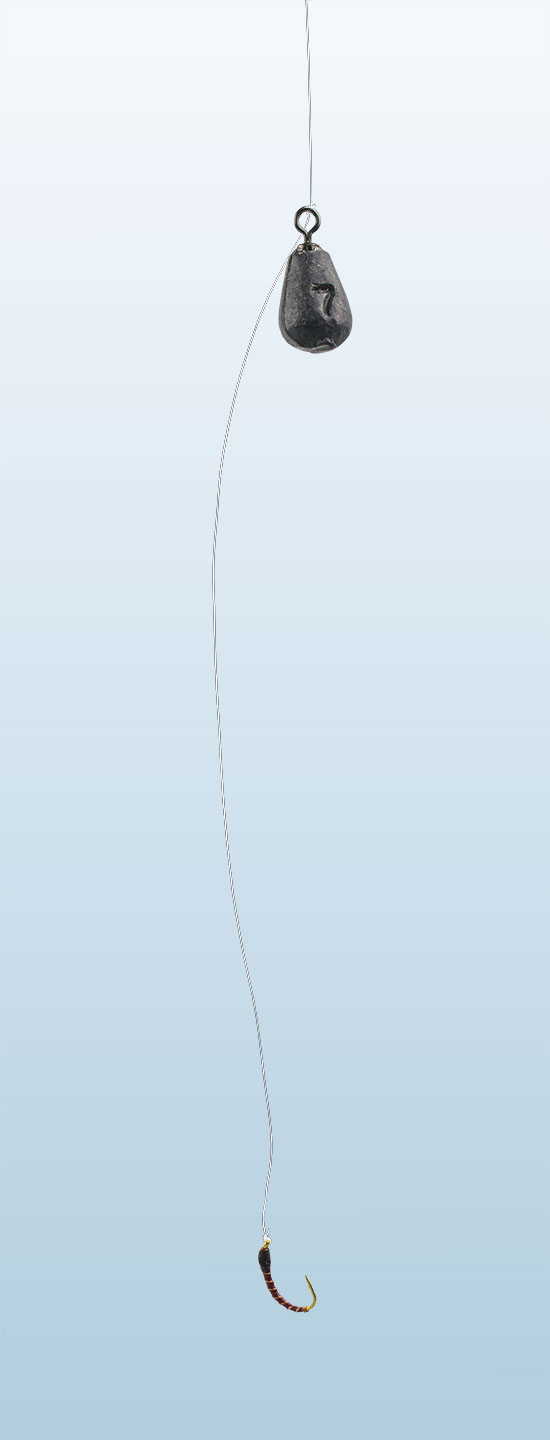 Hier kommt der Lockeffekt des Bleis zum Tragen. Bei jedem Anheben aus dem Schlick bewirkt das Blei eine kleine Verwirbelung. Hebt man jetzt das Blei im entsprechenden Abstand an, kommt die unterste Nymphe genau in der Schlammwolke zu liegen und die Felche findet die Nymphe tatsächlich dort, wo sie sie auch vermutet. Hier darf das Blei nicht zu schwer sein, damit man die Bisse am Nachläufer auch zuverlässig registriert. «Felchenguru», der rund 80 Prozent seiner Bisse auf den Nachläufer verzeichnet, verwendet deshalb nur ein 5,5 Gramm schweres Klemmblei. Battaglia empfiehlt bei schlammigem Grund ebenfalls den Nachläufer, wählt das Blei allerdings einen Tick schwerer (sieben Gramm). Auch bei «Felchenköder»-Jäggi aus Wolfisberg, der vor allem Hegenen für den Bielersee vertreibt, sind die Nachläufermodelle sehr gefragt.