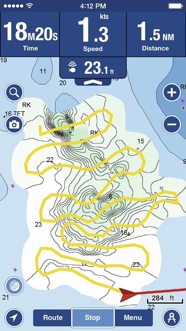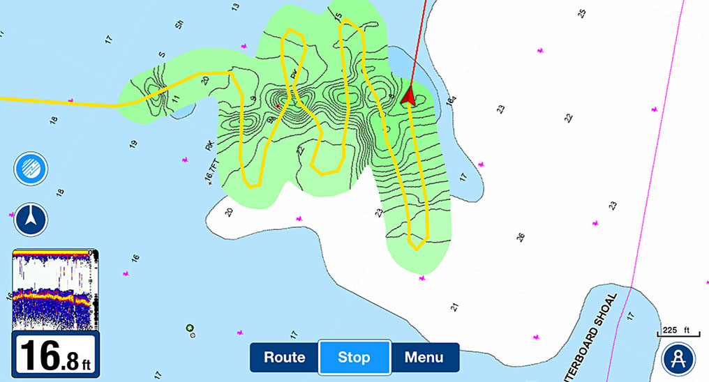Die «SonarChart Live»-Applikation ermöglicht es, fortlaufend eine hochgenaue Tiefenprofilkarte zu erstellen, die in Echtzeit während des Navigierens auf dem Bildschirm gezeigt wird. Die Funktion kann mit der entsprechenden App kabellos via Handy oder Tablet auf aktuellen Simrad-Modellen oder den neuen Lowrance-Serien wie «HDS-3 Gen3», «HDS-Carbon», «Elite-TI» aktiviert werden. Die Tiefenprofilkarte können sowohl auf dem Handy oder Tablet als auch direkt auf dem Bildschirm eines kompatiblen Plotters von Lowrance und Simrad angezeigt werden. Die App kann aus dem Google Play oder Itunes-Store heruntergeladen werden. Man benötigt die Navionics Boating App.