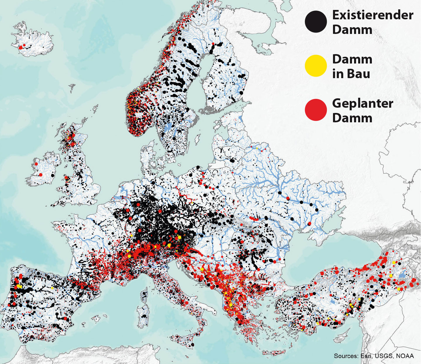zvg|nna – Die erste europaweite Bestandsaufnahme bestehender und geplanter Wasserkraftwerke zeigt den immensen Druck, unter dem die Flüsse des gesamten Kontinents stehen. Zu den bisher schon bestehenden 21 387 Wasserkraftwerken sollen hauptsächlich in den Alpen und auf dem Balkan weitere 8779 hinzukommen. Teils unberührte Flüsse – insbesondere auf dem Balkan – würden dadurch zerstört. Über ein Viertel dieser geplanten Kraftwerke (2500) sind zudem in Schutzgebieten vorgesehen, unter anderem in Nationalparks.