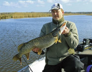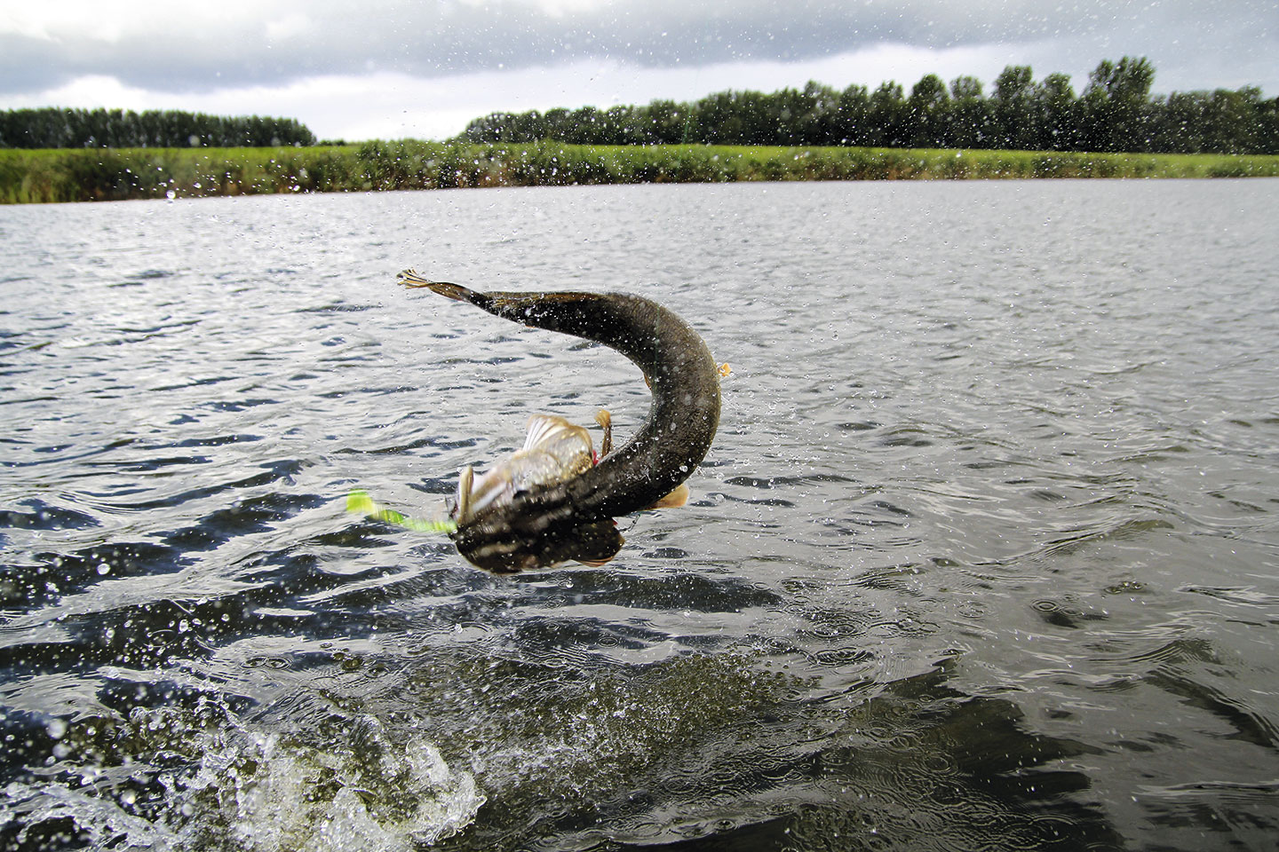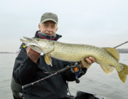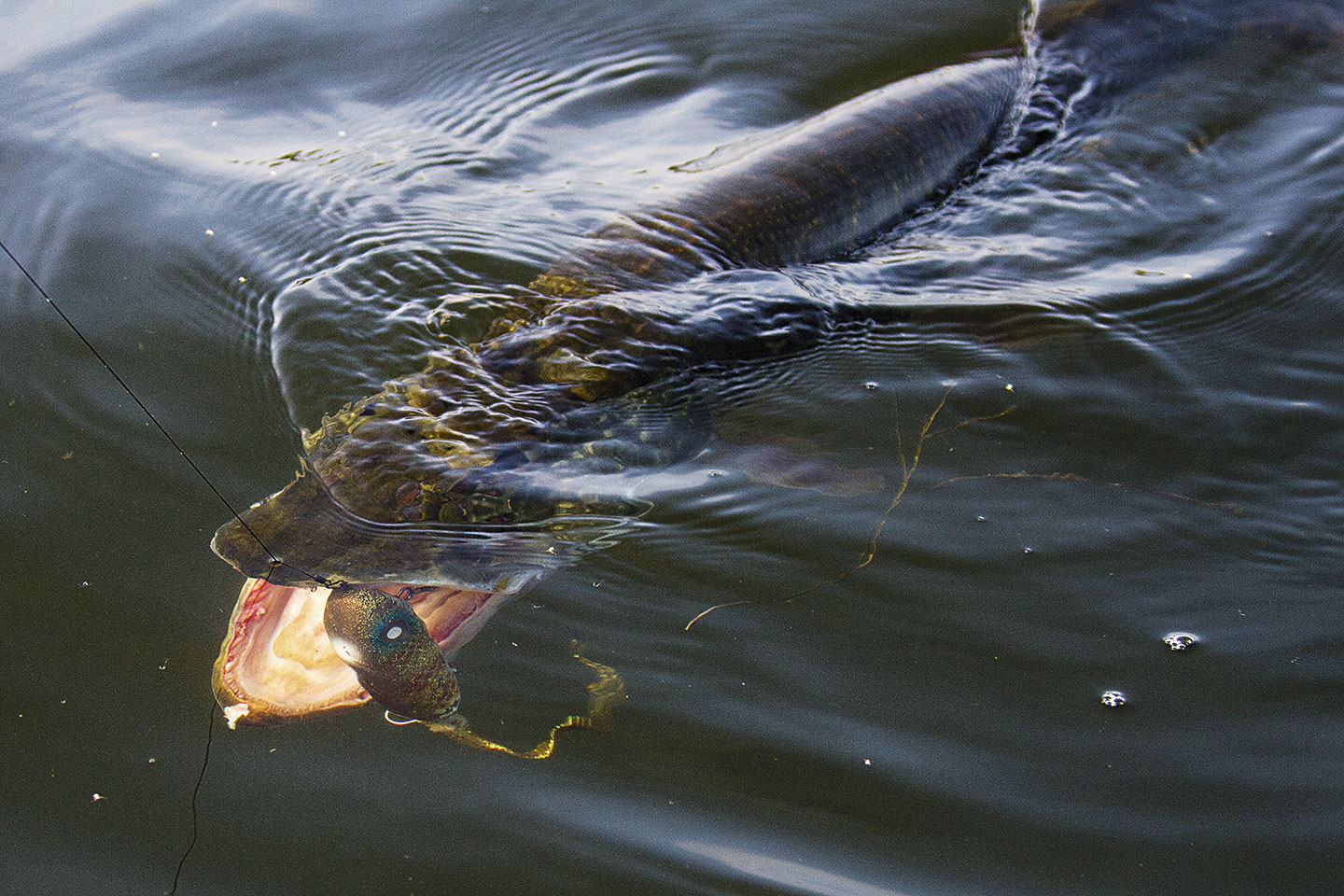 Ich freue mich besonders auf die Zeit der ersten Nachtfröste, weil die Pflanzen dann nicht mehr so ein grosses Hindernis darstellen. Die Blätter und Stiele sind nun so weich geworden, dass man zwischen ihnen einen Hecht sicher ausdrillen kann. Dennoch sollte man mit einer kräftigen Rute und entsprechend starker Schnur ans Wasser gehen, auch wenn nicht riesige Hechte zu erwarten sind, aber der Köder immer mal wieder an den Pflanzen hängen bleibt. Baitcaster- oder Spinnruten dürfen ruhig auch ein bisschen länger sein. Ich verwende Ruten mit einem Wurfgewicht bis 50 Gramm. Mit ihnen habe ich im Drill grossen Spass, kann aber auch noch einen robusten Pflanzenstängel relativ leicht herausziehen.