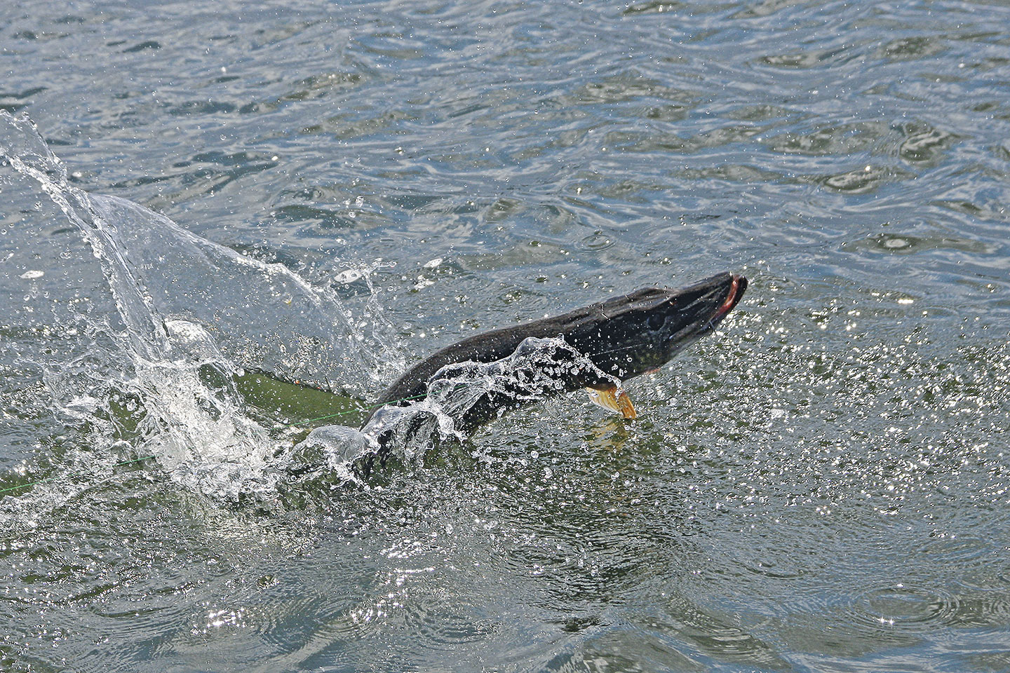 In flacheren Seen spielt die Sprungschicht hingegen keine Rolle. Das heisst aber nicht, dass hier alles immer gleich bleibt. Hechte sind ständig in Bewegung und möchten dauernd etwas anderes angeboten bekommen. Bevor ich meinen Köder auswerfe, schaue ich mir stets die jeweiligen Bedingungen an – und passe mich daran an, was die Hechte wollen.