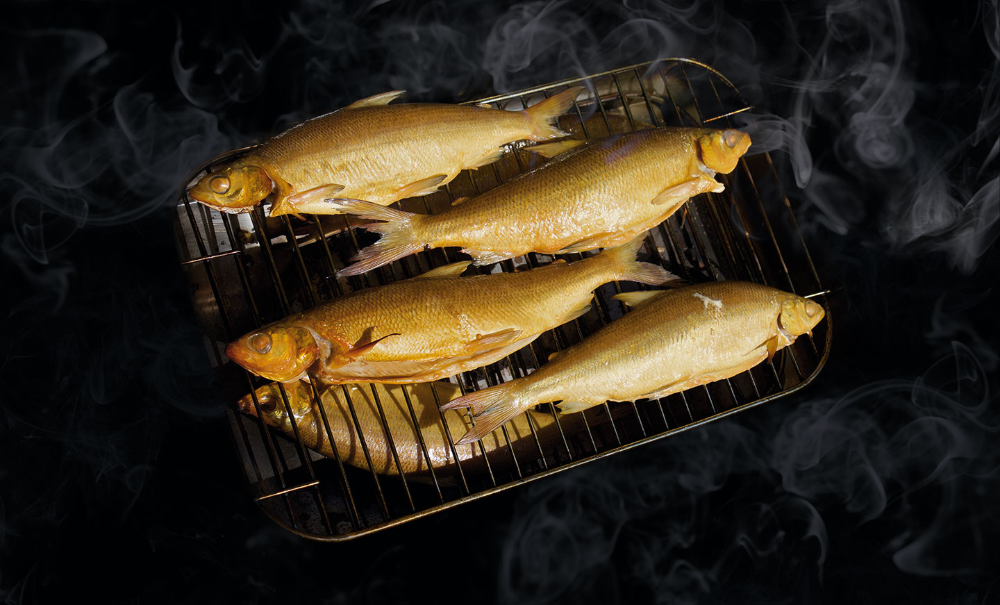 Von unseren Süsswasserfischen empfiehlt Hauer eigentlich fast alle zum Räuchern. Einzig mit den fettarmen Räubern, vor allem dem Hecht, sollte man zurückhaltend sein. Wer hier den richtigen Zeitpunkt verpasst, wird mit einer gummigen und nicht besonders schön anzusehenden Mahlzeit bestraft. Da gibt es deutlich geeignetere Fische, die eine gros­se Gartoleranz aufweisen. Eine Felche oder eine Forelle schmeckt auch noch hervorragend, wenn sie ein paar Minuten zu wenig oder zu viel im Ofen verbracht hat. Und dies kann schnell passieren, insbesondere bei den sogenannten Tischräucheröfen, wo im Freien etwas Wind oder Kälte das Räuchern empfindlich verlängern kann. Neben den Salmoniden, dem Aal, den Welsen und den Stören sind auch sämtliche Karpfenartigen gut geeignet, sofern man die Sache mit den Gräten in den Griff kriegt.