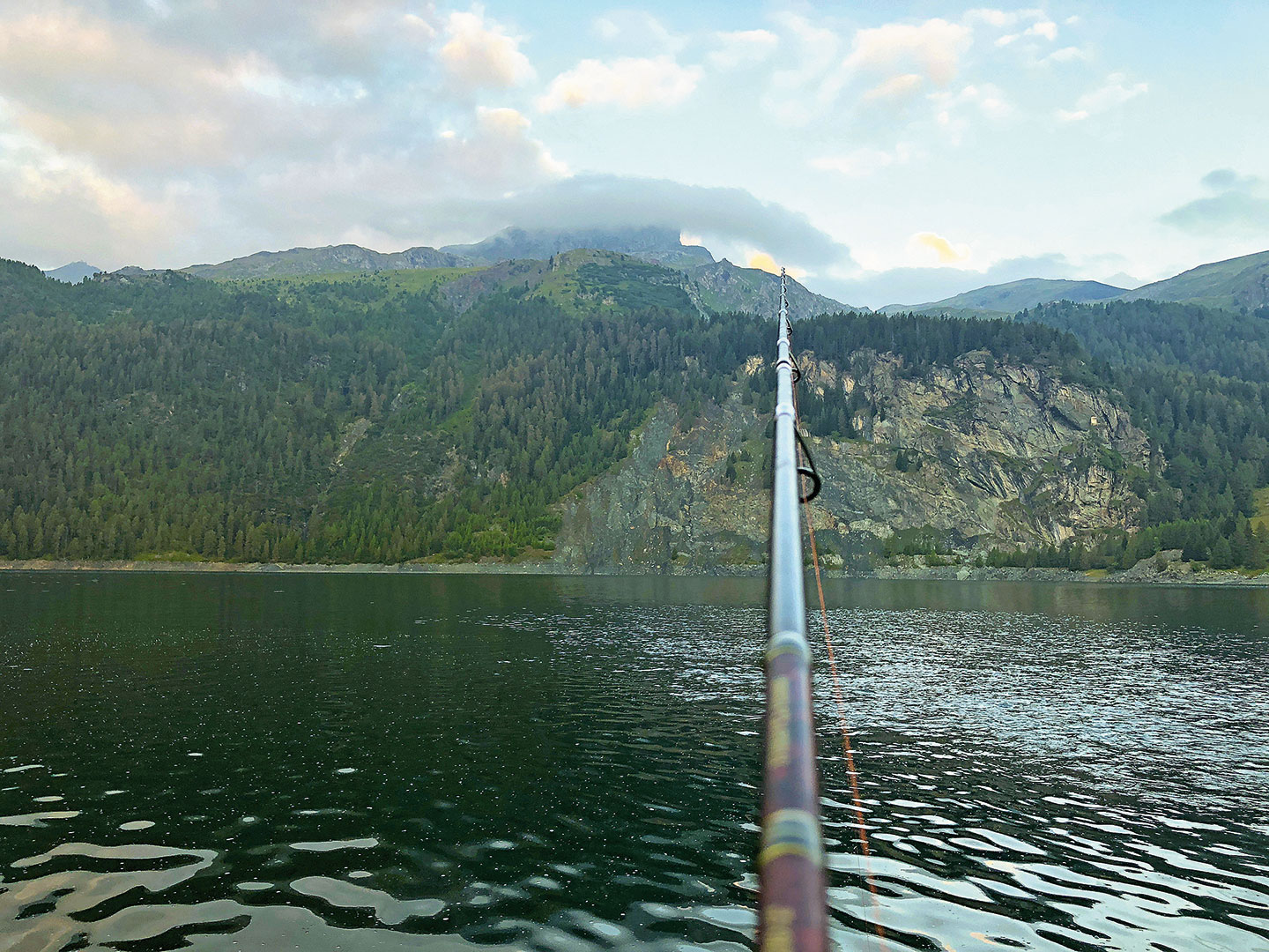 Der neun Kilometer lange Livigno-Stausee auf 1805 m ü. M. ist zum Fischen sehr beliebt. Er ist aus mehreren Gründen ein spezieller See und immer für eine Überraschung gut. Die Staumauer befindet sich genau auf der schweizerisch-italienischen Grenze. Man darf mit dem Bündner Kantonspatent nur die linke Uferseite von der Staumauer aus befischen, die Uferlänge der schweizerischen Seite misst gerade einmal knapp anderthalb Kilometer. Die rechte, italienische Seite der Staumauer darf ausschliesslich mit dem italienischen Patent befischt werden. Hier gelten auch andere Vorschriften als auf der Bündnerseite.